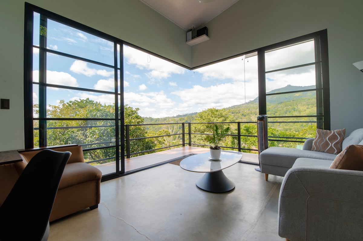 The Suave Vida Getaway Guesthouse offers you its openness with window walls and valley views surrounded in Costa Rican Nature at its purest. You will feel emerged to the views of the valley in a comfortably spacious open space enriched with stylish furniture and décor themed to bring raw elements of nature inside the living area. You will find yourself in tranquility with the sounds of nature and the running streams.