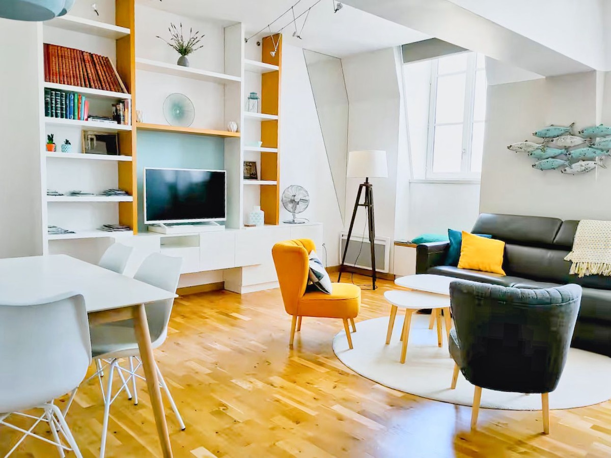 裝潢精美且寬敞的公寓,位於舊港口(就在守護港口的著名兩座塔樓前面)。 非常安靜(開放在庭院),有空調,距離餐廳、精品店、步行街、歷史建築、景點僅幾步之遙。 可以存放自行車。 住宿期間,我們的安全停車位距離公寓200公尺,僅需支付象徵性費用