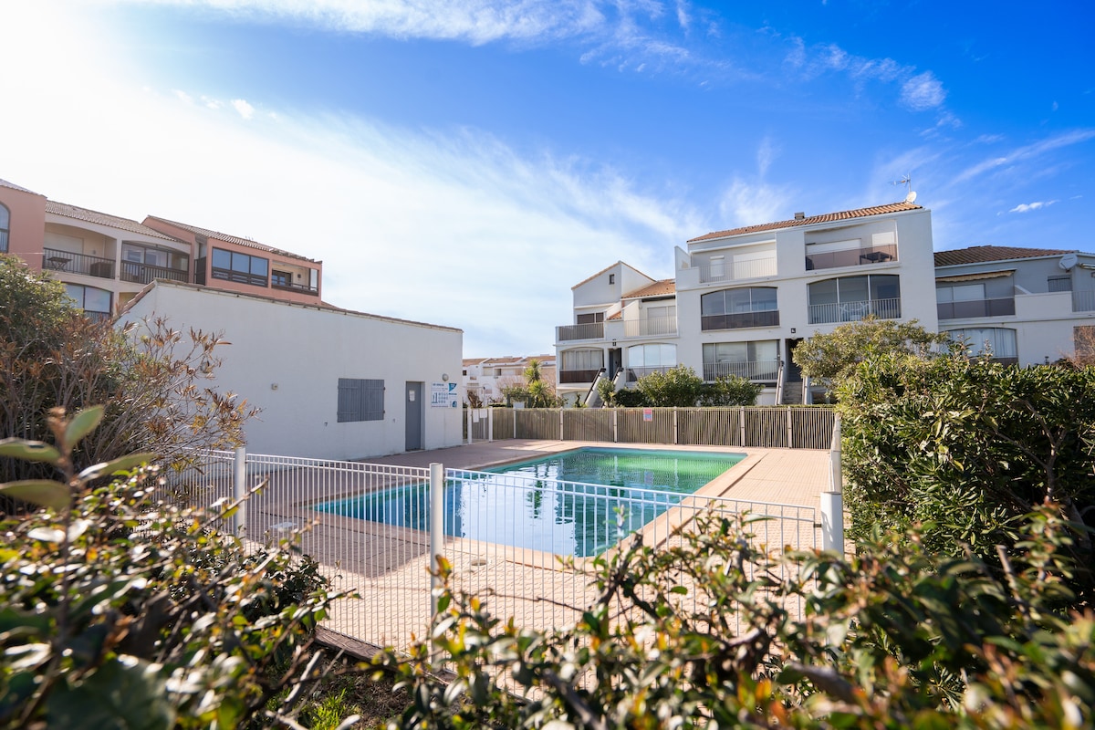 美麗的 3 星級以上公寓,有 2 間臥室和 2 間浴室,面積 50 平方公尺(538 平方英尺),經過全面翻修,可俯瞰船隻,距離海灘 6 分鐘路程。 這套優雅的花園層公寓位於碼頭上,環境安靜,可俯瞰船隻,配有露臺、夏日廚房和舒適的花園。 非常適合與親朋好友或情侶入住。 ✅所有房間都有空調。 ✅提供牀單和毛巾。 私人✅停車場的指定停車位,並由大門關閉。