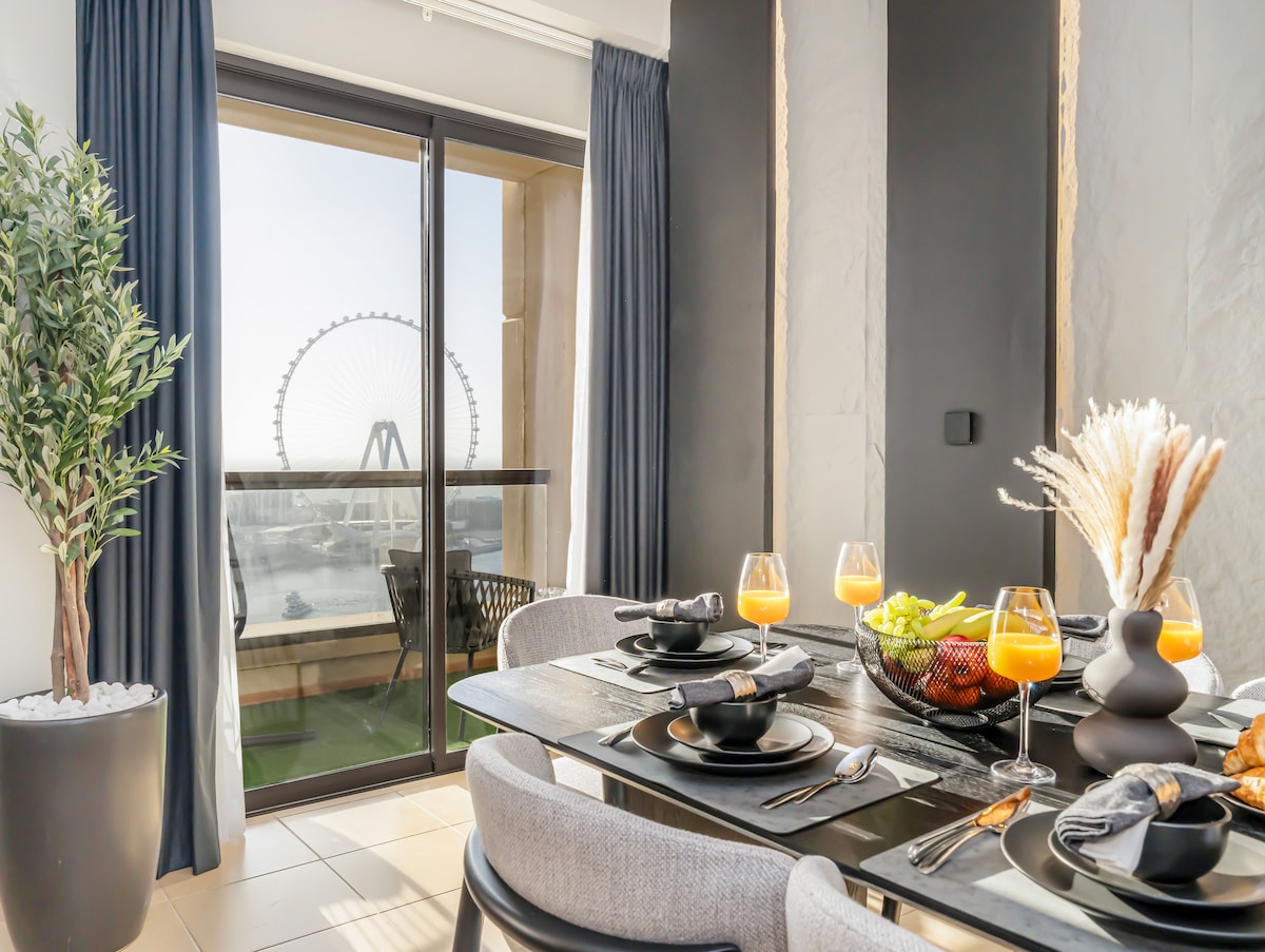 Welcome to this brand-new 2 bedroom 2,5 Bathroom apartment in the heart of JBR. It promises a lively and vibrant retreat within walking distance of the Dubai Eye 🎡, Dubai Marina, JBR Beach 🏖️, Dubai's top restaurants, cafes, shops🛍️, and entertainment. 🌅Wake up to stunning views from both bedrooms or unwind on the balcony overlooking Dubai’s iconic Ain, JBR Walk, dive into the pool or work out at the gym. 📍This prime location ensures an unforgettable stay in the heart of JBR & Marina 💫