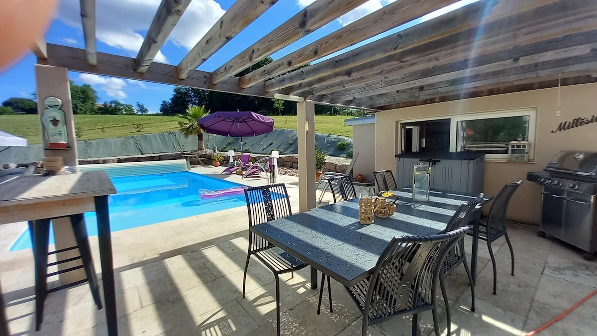 Gîte de Jourda Bas 4 ⭐️⭐️⭐️⭐️ 距離Agen 10分鐘,來到綠色環境中充電🌿 我們的獨立小屋有一個完全封閉的公園,可容納您的孩子和四足夥伴,以及一個露臺,可享受戶外活動。 🏡 1間寬敞的臥室,配有標準雙人牀和更衣室(可供小孩使用) ,客廳配有舒適的沙發牀。 從7月1日至9月30日,享受我們的私人按摩浴缸區域💦
