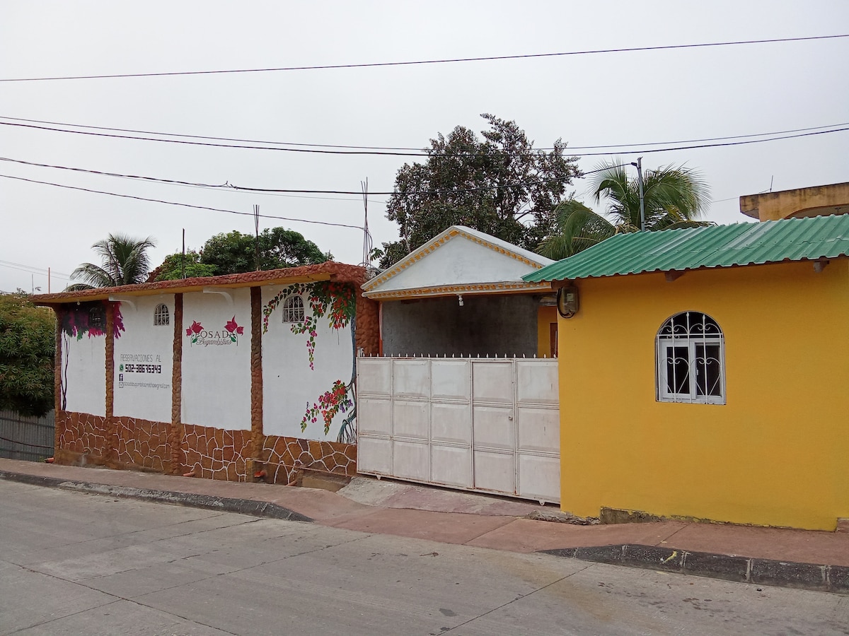 Este lugar tan elegante está cerca de todo lo imprescindible. Estamos a solo 5 minutos de la Isla de Flores, en pleno centro de San Benito, Petén. Contamos con amplio parqueo y un ambiente tranquilo y acogedor, perfecto para relajarte. Nuestro espacio combina el encanto colonial con un toque moderno, creando el lugar ideal para descansar y disfrutar. 🌿✨