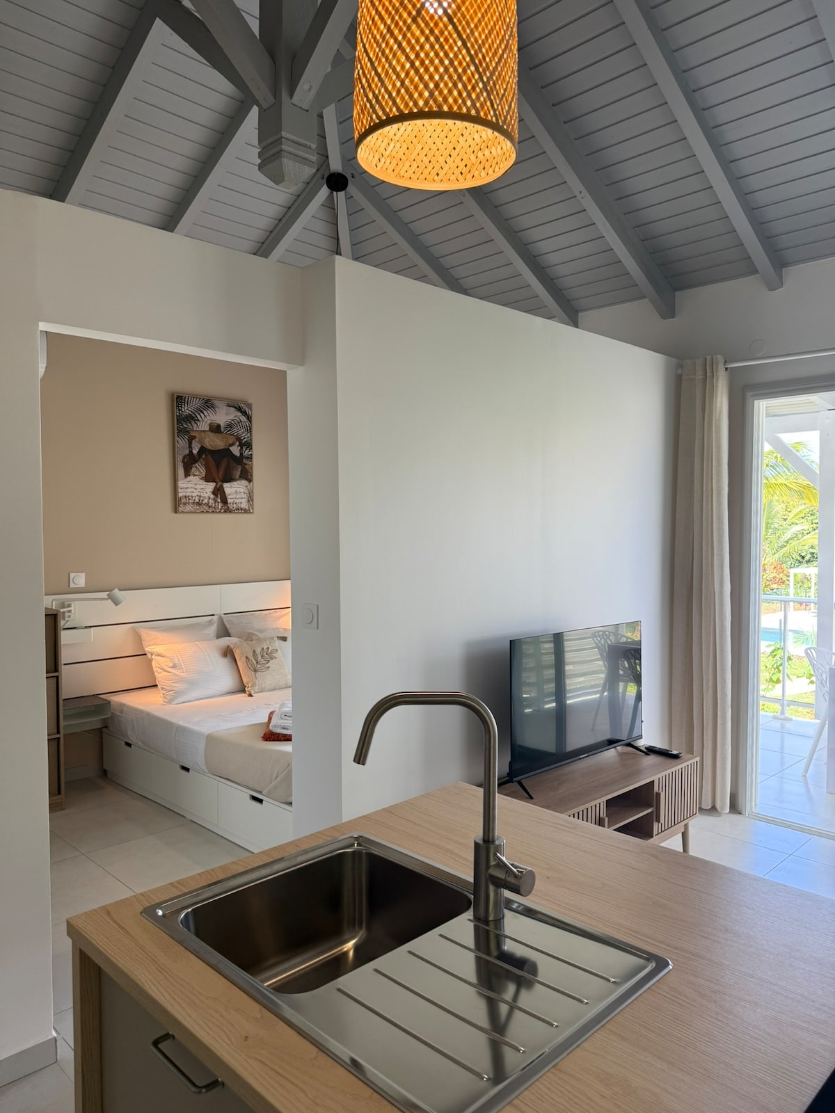 T2 HARMONIE 可使用別墅底層的家庭泳池(租戶專用),有獨立入口、停車位、水箱和太陽能設備,以防停電。位於一個綠意盎然的安靜區域。距離 kassaverie 和河流 5 分鐘,附近有著名的蚊子峽谷 (Canyon de la Moustique),非常適合徒步旅行。10 分鐘即可抵達商業區(小型購物中心、餐廳、藥局、醫生)。