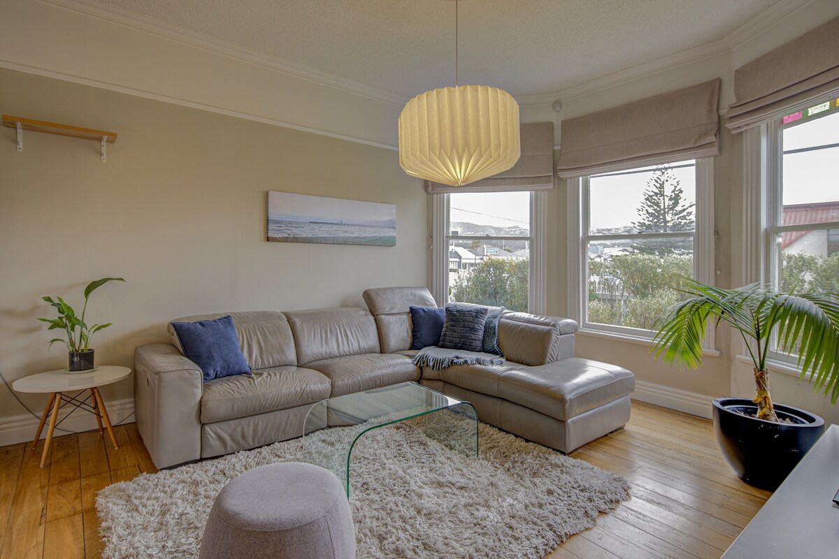 歡迎來到你的 Petone 度假屋。 您可以選擇在前門廊的籃椅上放鬆身心,也可以在私人後院放鬆身心。 室內有明亮、寬敞的廚房,配備烹飪所需的一切設備。 獨立的客廳提供充足的空間,配有舒適的天然氣壁爐,非常適合寒冷的夜晚。 這個城市邊緣的隱藏式住所,前門外有方便的停車位,舒適和輕鬆是標準配備。