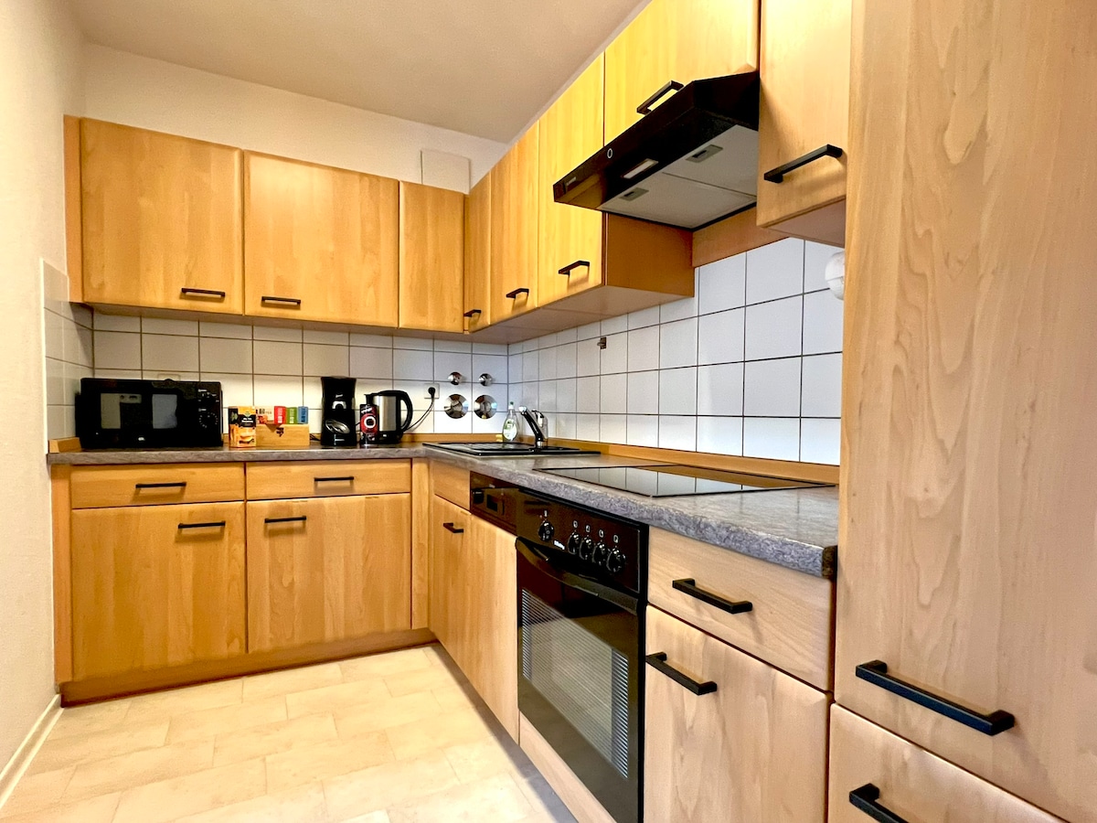 舒適的55平方米公寓,位於烏爾姆市中心(客廳、餐廳、臥室、廚房、浴室和獨立廁所)。 公寓設備齊全,廚房設備齊全,最多可容納4人。 免費停車場直接位於房源內 附近有麵包店、超市和公共交通工具 步行3分鐘即可抵達自助洗衣店 步行7分鐘即可抵達Münsterplatz和Ulm購物街
