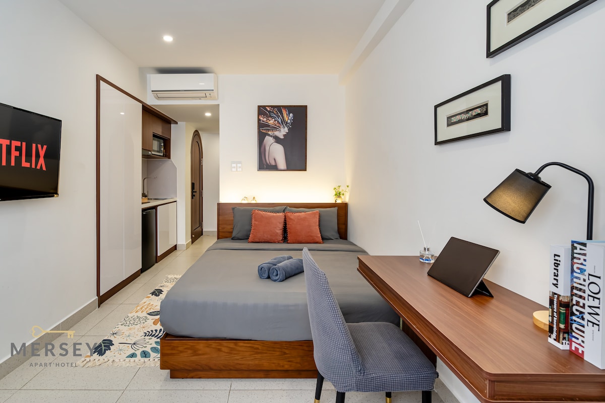 - A stylish studio of Mersey Ben Thanh Saigon Apart'Hotel - a member of HoLo & Mersey Hospitality. - LARGER GROUP can book other rooms to stay here together. - Close proximity to Ben Thanh Market, Nguyen Hue, Pham Ngu Lao & Bui Vien Area - New& Stylish designed Studio - Surrounded by all tourist attractions - Private kitchen & Private bathroom - Potential for noise - No Smoking - Pet are not allowed - Deposit & Utility Bills for long-stay to be informed at the time of inquiry