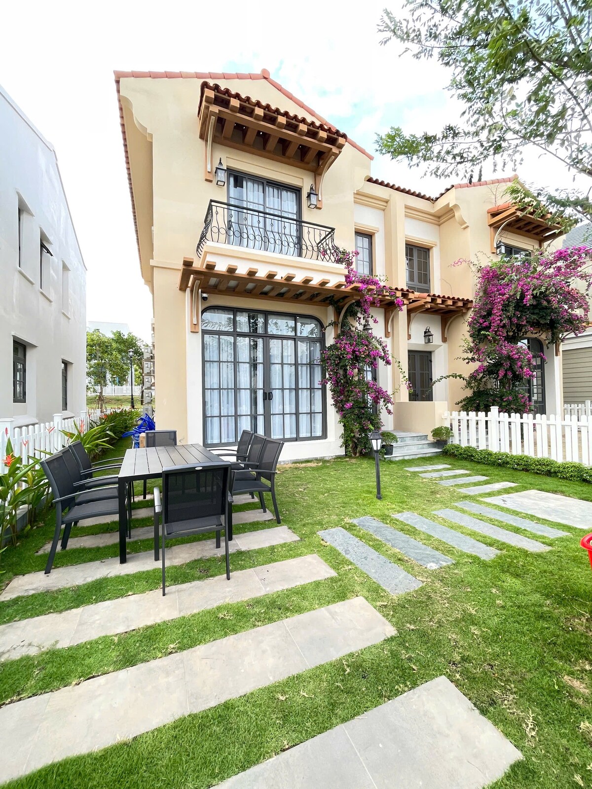 盡情享受您在 NovaWorld Phan Thiet 這棟豪華 3 臥室別墅的住宿體驗,非常適合家庭和一群好友入住。 每個房間都有自己的獨立浴室,確保隱私和舒適。 設備齊全的別墅:廚房(提供香料)、電視、微波爐、洗衣機、烘乾機、熨斗。 寬敞的花園,配備室外家具和燒烤設備。 位置便利:對面有游泳池和兒童遊樂區,搭乘電車 4 分鐘即可抵達海灘,附近有餐廳、咖啡店和便利商店。