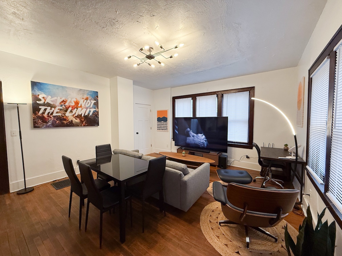 明亮且新翻修的2臥室公寓—步行即可抵達UIUC、Carle和市中心! 位於安靜、友善的街區,距離校園、醫院、商店、咖啡館和兒童公園僅幾分鐘路程。 全面翻修,配有85英寸電視、全套廚房和舒適的標準雙人床,非常適合電影之夜和家常料理。 非常適合旅行護士、訪問學者或團體入住。 精心設計,適合長期住宿和在家工作。 歡迎與我們聯絡,我們很樂意接待你,而且住宿時間不限!