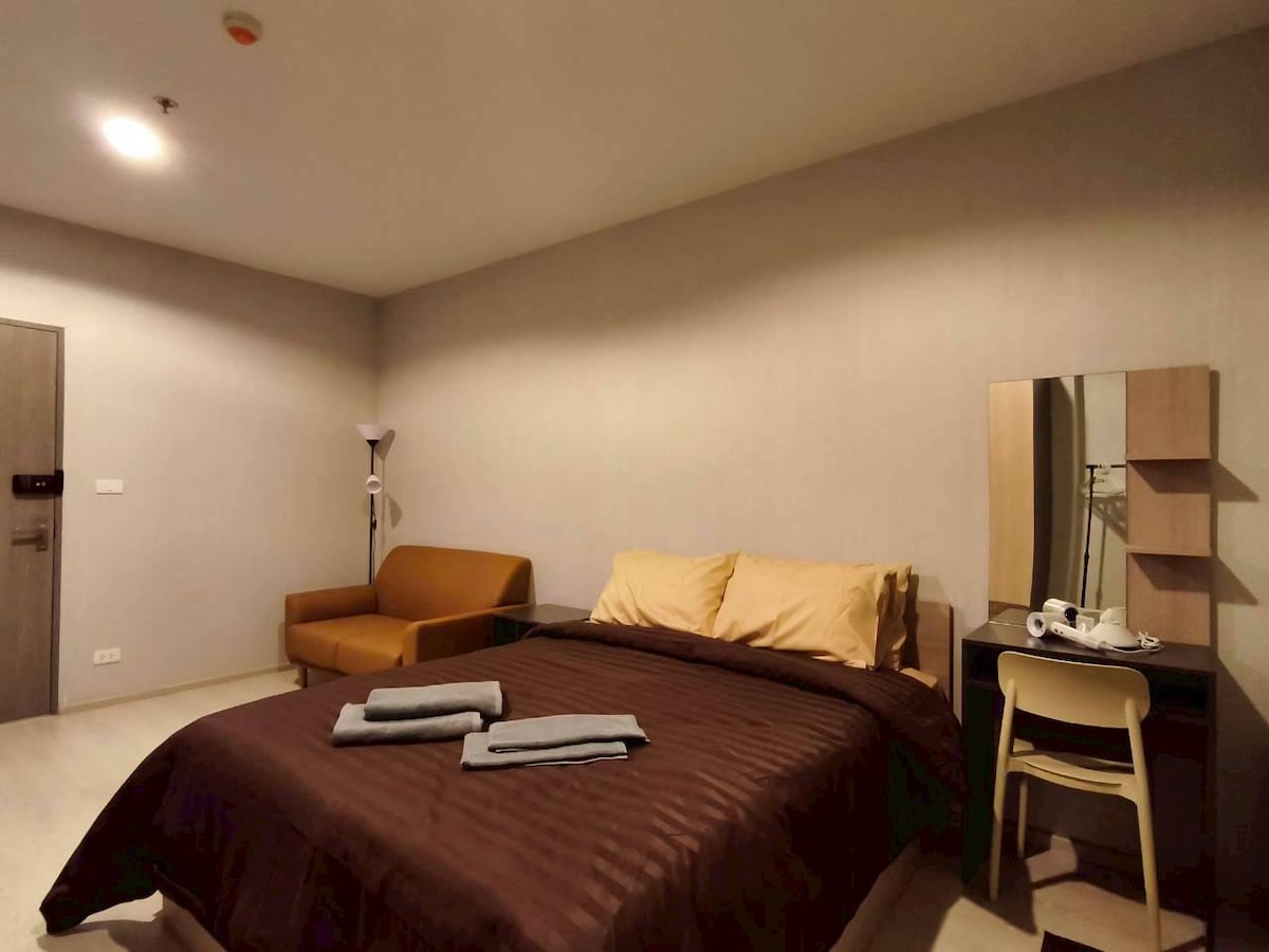 -简约时尚的单间公寓,配以宽敞的标准大床,客厅,厨房,洗手间,wifi设备齐全,希望给您带来一个轻松舒适的居住环境。 -公寓位于曼谷中心区素坤逸路50巷,BTS ON NUT站,约十分钟的步行路程,风景优美,交通便利。 -小区有免费公共区域,游泳池、健身房,满足您旅途一天后的娱乐需求。 -周边有7-11 24小时便利店、Tesco Lotus超市、美食广场、餐厅,还有曼谷著名的按摩店。 -欢迎您入住我们公寓,体验当地人生活的不同节奏及方式,最后,祝您旅途愉快。