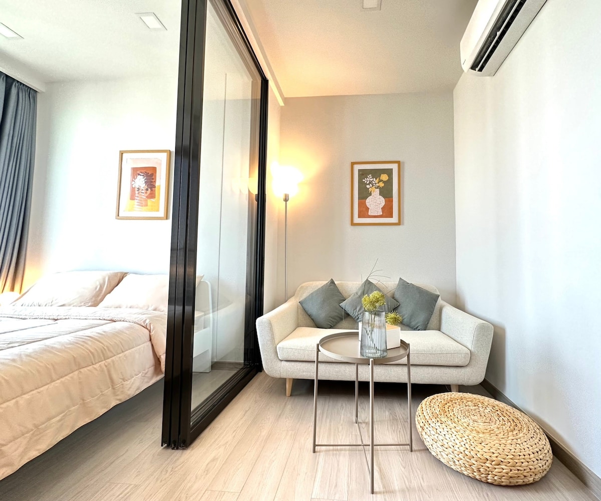 欢迎您选择并且入住我的公寓,希望您有一个很棒的泰国之旅。 房子位于RAMA9,2024年交付的LOFT公寓。房间面积40平左右,包括一间卧室、一间客厅和餐厅、一间厨房和一间浴室,轻松容纳3名成年人。(tps: 在订单入住人数为1-2人时,默认只有卧室里一张床,如果您需要增加铺沙发床,请在预订时将人数填写为3人,并在预订后联系我们特别告知,我们会在您入住前安排工作人员铺好沙发床) 订单价格包括使用整套房源,以及健身中心,游泳池以及共享办公空间的费用。