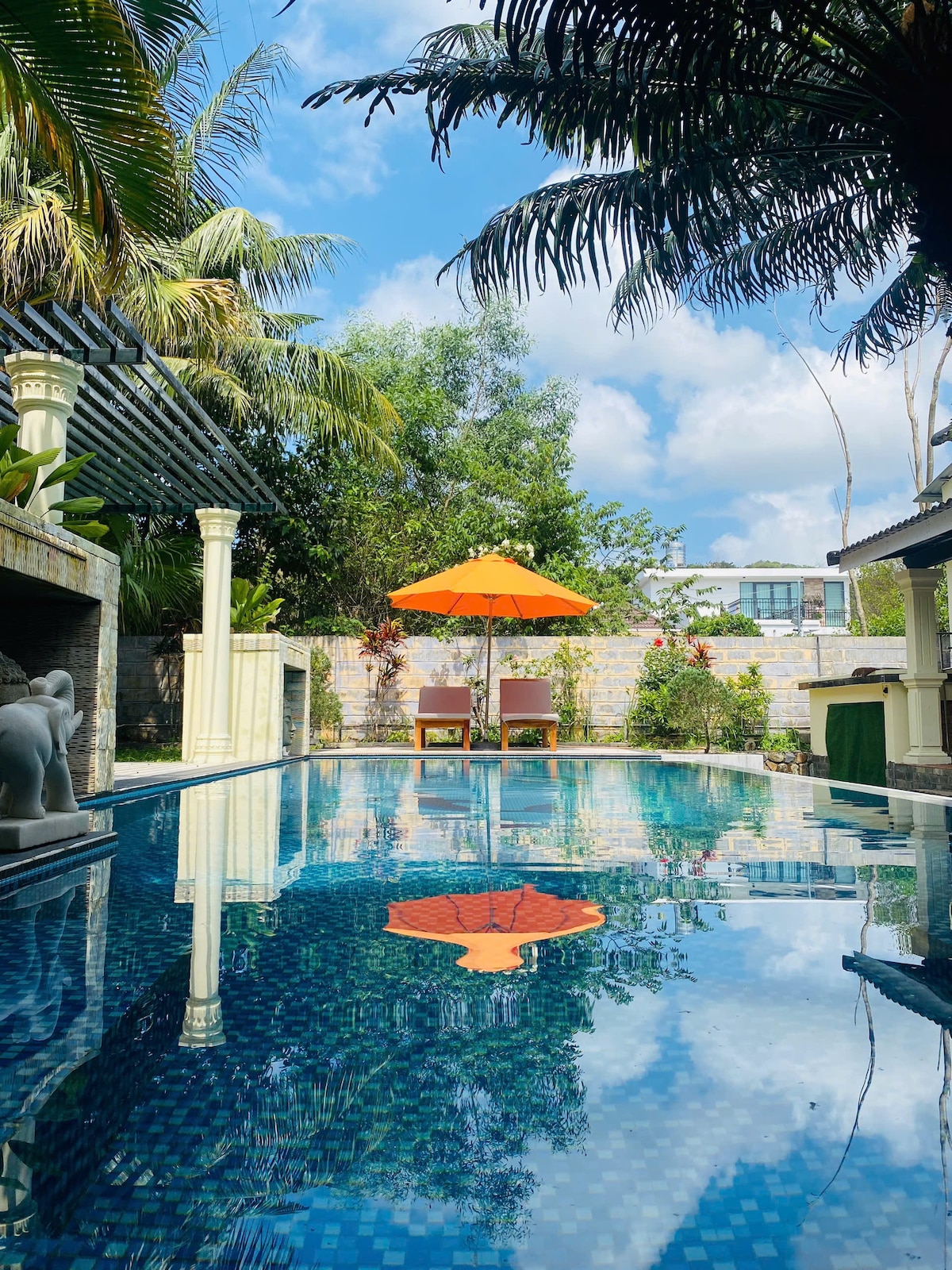 這間4臥室別墅位於Ong Lang的寧靜區域,擁有優雅的法國殖民地建築,天花板高,空間明亮通風。 亮點是一個非常大的私人泳池,非常適合與親朋好友一起放鬆或聚會。 戶外開放式廚房設備齊全,非常適合燒烤和共享餐點。 四周環繞著綠色植物,享有隱私,但靠近Ong Lang Beach和Duong Dong中心,是富國島的完美度假勝地。