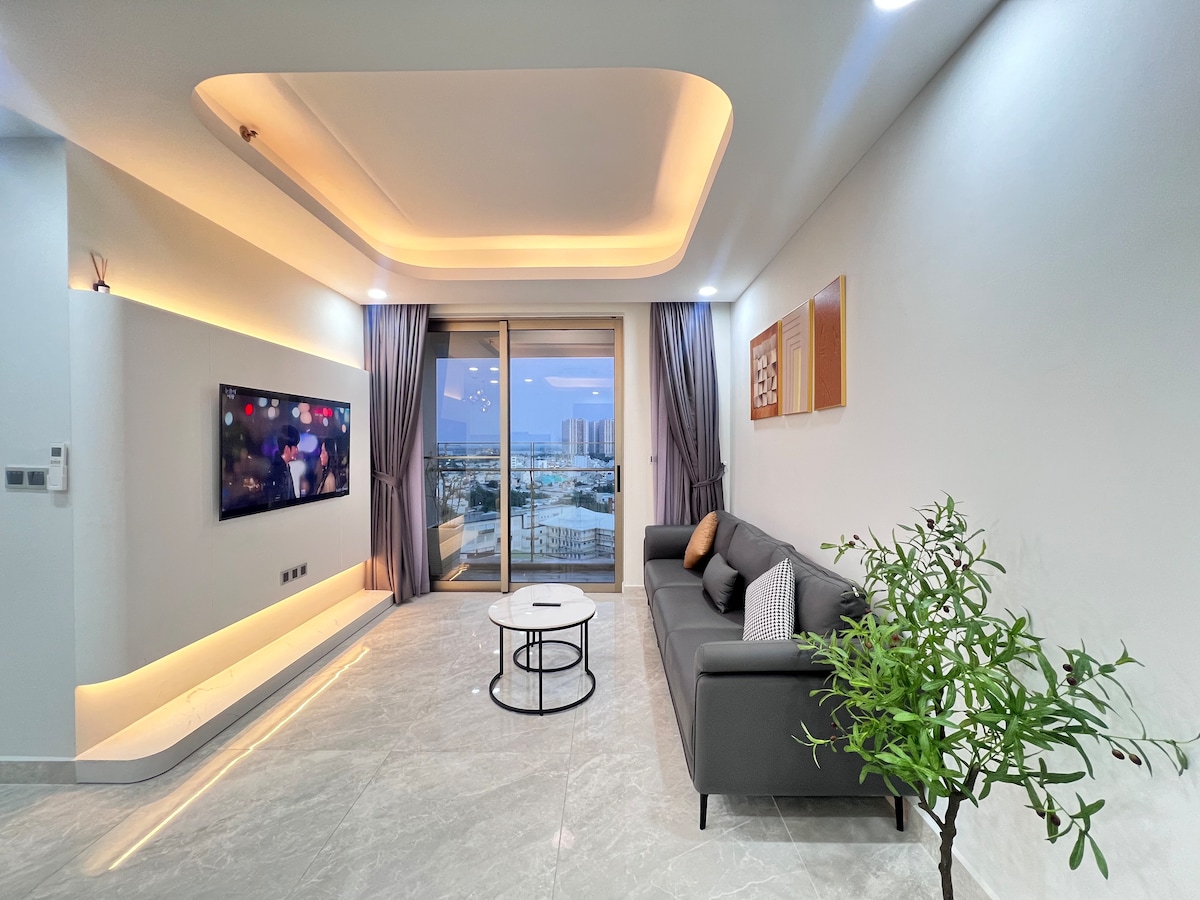 A stylish & comfortable apartment 85m2 at Hung Phuc Happy Residence Premier located in the heart of district 7, Phu My Hung, with just a short walk to all the best shops, restaurants, and conveniences. Nearest bus stop in front. Highly educated and quite neighbors that surrounded by green parks and beautiful villas. Decorated in modern Japandi x Wabi sabi style with a focus on natural materials & clean lines. A great getaway or even staycation for those who want to experience new things.