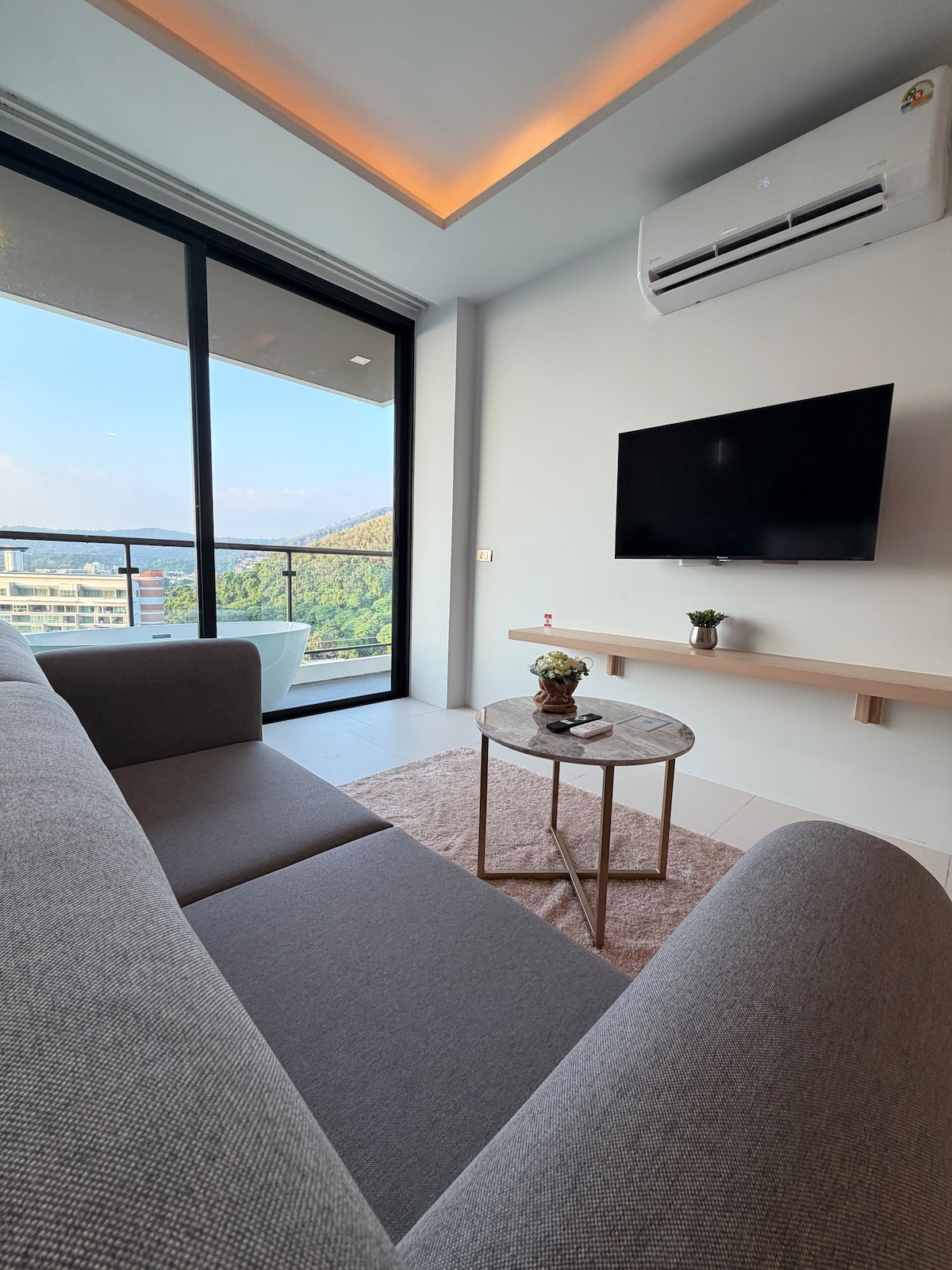 这是一间位于卡伦(Karon)海滩附近的全新现代公寓,距离海滩仅约 800 米(步行 10 分钟),位置优越,生活便利。这里是普吉岛西南岸最受欢迎、又相对宁静的度假区域之一,非常适合想要放松、享受海岛风情的旅客。 公寓面积约 35 平方米,为单间设计,风格现代简约,配有 高速无线网络,入住后水、电、网络均已包含,无需额外付费。 房间配备齐全的厨房设施——冰箱、微波炉、电磁炉等,可自行烹饪。 入住时我们还贴心准备了矿泉水与一些洗漱用品,让您拎包即可入住。 公寓楼设施完善,设有 两座屋顶无边泳池、健身房 以及 餐厅,您可以在泳池边欣赏卡伦海滩的壮丽景色,享受惬意的度假时光。 📍 位置与周边景点 🚶♀️ 卡伦海滩:约 800 米,步行 10 分钟 🚗 卡塔海滩:约 5 分钟车程(2.5 公里) 🚗 芭东海滩:约 10 分钟车程(6 公里) 🚗 查龙寺:约 15 分钟车程 🚗 大佛 :约 20 分钟车 🚗 普吉镇:约 25 分钟车程 区域内餐厅便利店、按摩店和夜市齐全,生活与娱乐十分方便。
