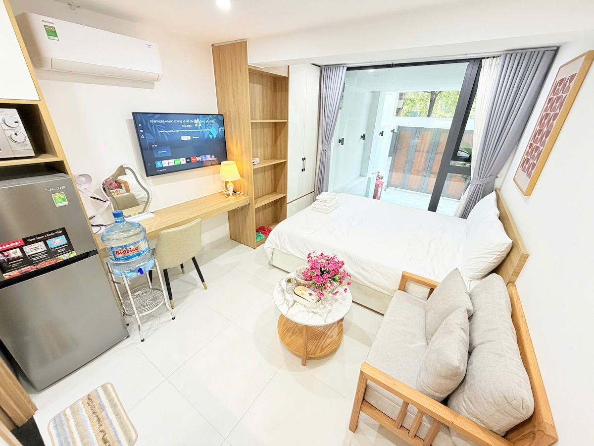 🌟Căn hộ studio ngập tràn ánh sáng tự nhiên ☀️, mang lại cảm giác thoáng đãng và dễ chịu ngay khi bước vào 🍃. Mọi góc nhỏ đều được chăm chút chỉn chu – từ bàn làm việc dài sát tường đến chiếc giường rộng rãi cạnh cửa sổ. Cửa sổ lùa nhỏ xinh và thoáng mát giúp căn phòng luôn mát mẻ, đón gió trời trong lành và ánh sáng tốt. Căn hộ đã được trang bị đầy đủ nội thất – chỉ cần xách vali đến và tận hưởng cuộc sống 🌷💗🌿