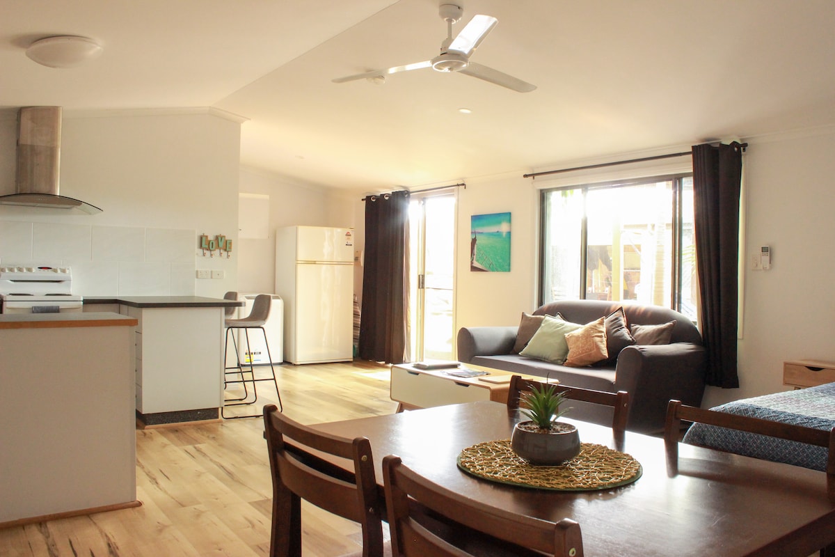 Welcome to our lovely, fully self-contained studio apartment — your own tropical sanctuary. Fresh and clean, the studio has everything you need for a comfortable and relaxing stay. The studio is located in the backyard of our home, converted to host guests. You’ll enjoy a private entrance and your own peaceful space, separate from the main house. Step outside to a tranquil deck, perfect for enjoying a cuppa or an evening glass of wine. 🚭 Please note: This is a non-smoking property.