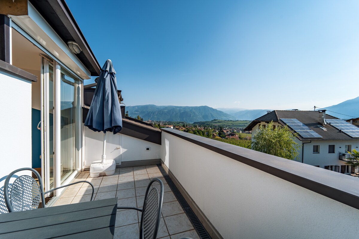 Liebevoll & modern eingerichtete Ferienwohnung, große Sonnenterasse mit bequemen Gartenmöbeln & das einzigartige Südtiroler Bergpanorama. Die Unterkunft in Kaltern liegt 5 entspannte Gehminuten vom hystorischen Ortskern entfernt. In unmittelbarer Nähe befinden sich u. a.: der Kalterer See, der Mendelpass, die Montiggler Seen und die Stadt Bozen. Die Unterkunft ist neu und überzeugt durch moderne Einrichtung & ihre idyllische, ruhige Lage. Zur Ruhe kommen, entspannen, Zweisamkeit genießen