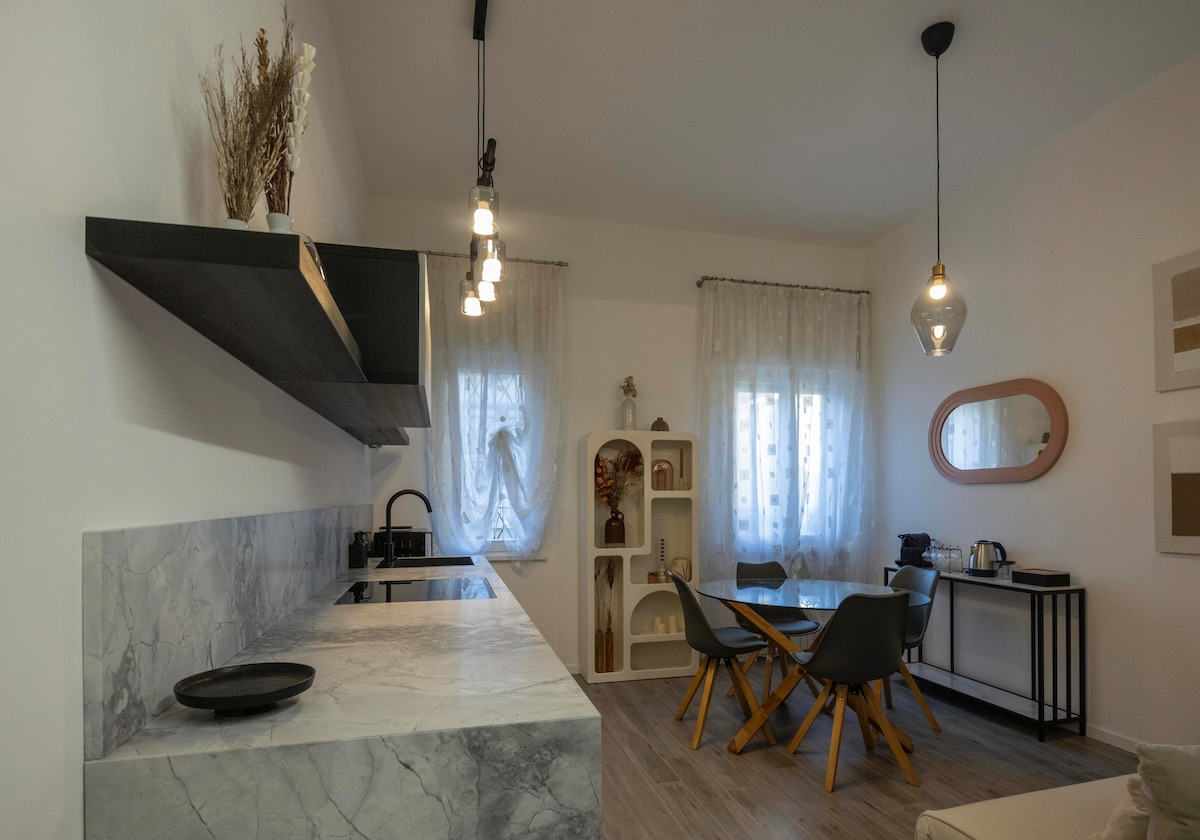 Elegant Design Apartment in Padua, Via San Fermo; It is composed: -Entrance in a modern setting with fiber Wi-Fi -Open-space living room with a sofa bed, TV, and air conditioning -Modern kitchen with state-of-the-art appliances -Master bedroom with a king-size bed and TV -Bathroom with a shower enclosure, toilet, bidet, sink, and laundry area The apartment is very convenient for public transport Just a few meters away is Piazzale Garibaldi with many bus lines, or the train station is 1 km away