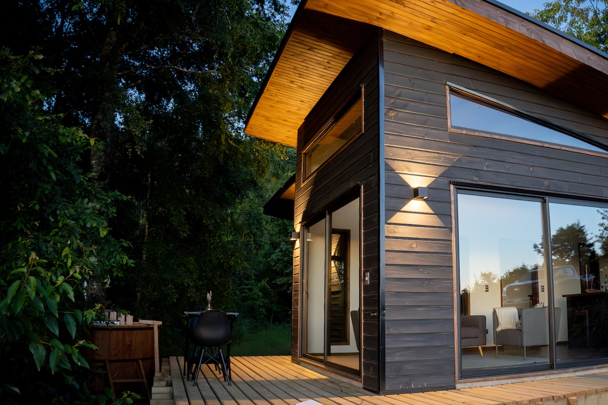 在這個獨特而寧靜的度假勝地放鬆身心。沉浸在原生森林中,就像在童話故事中一樣,將大自然視為一個整體,您可以在夜晚從床上看到星星和月亮……如果天氣允許的話。 享受雨水,偶爾也能欣賞到雪花的美麗! 有私人水缸! 罐子有單獨的價值(不包含在小屋的價值中 - 每次使用費用為 $40,000)