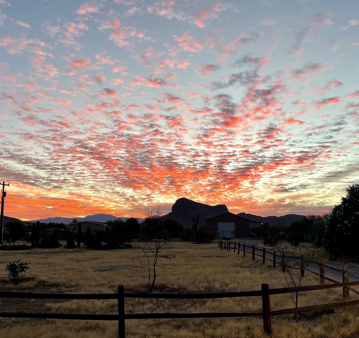 2017年建造的客用住房,位於土桑山腳,毗鄰甜水保護區(Sweetwater Preserve)(14 +英里的步道:山地自行車、騎馬、跑步和徒步旅行)!享受巨大的浸泡浴缸、烤肉架、日落和露台。樓下有全套廚房、起居區、浴室和臥室(550平方英尺)。爬上90度的梯子到臥室/休息空間,非常適合度假景觀。我們的房源佔地3英畝,有沙漠植物/動物、星星和安靜,但距離UA只有10英里。馬匹為氛圍增添了牧場生活的味道。