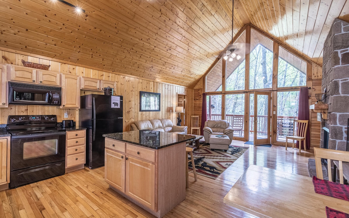 真正舒適的小木屋,坐落在煙霧山脈的中心,距離Pigeon Forge中心7英里。 在涼爽的夜晚放鬆身心,享受真正的燃木壁爐,或在我們美麗的3/4英畝林地上享受安靜的營火。 從環繞的露台觀賞野生動物,欣賞可愛的池塘景觀,您可以在那裡釣魚。 在漫長的一天享受煙霧之後,熱水浴缸等待著您! 享受最後一次特別的體驗,享受美麗的浪漫心臟浴缸。 這個小木屋是完美的浪漫度假勝地。