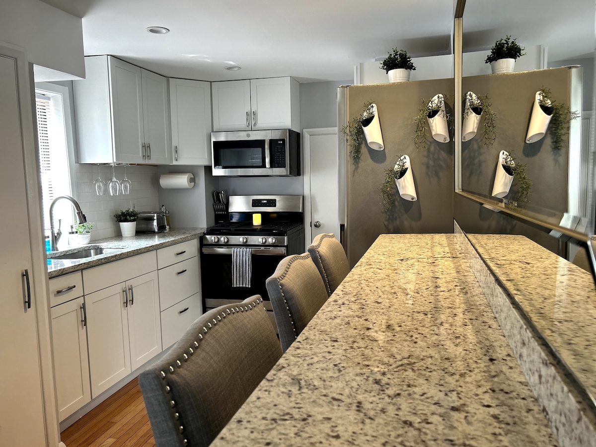 RowEnd 家庭友善,有停車位 完美融合城市魅力和海濱放鬆,非常適合休閒和商務。主臥室原始磚砌室內Q床、工作區域。2間臥室,可拉出的K日光浴床、壁爐、85吋電視、可拉出的沙發。全身噴霧淋浴間、洗衣機+烘乾機組合。WiFi、智慧電視。走出門外,您會發現自己沉浸在充滿活力的Fells Point能量中,以鵝卵石街道、歷史悠久的建築當地精品店、熱鬧的酒吧和餐廳而聞名,一切都在步行距離1個街區的水域