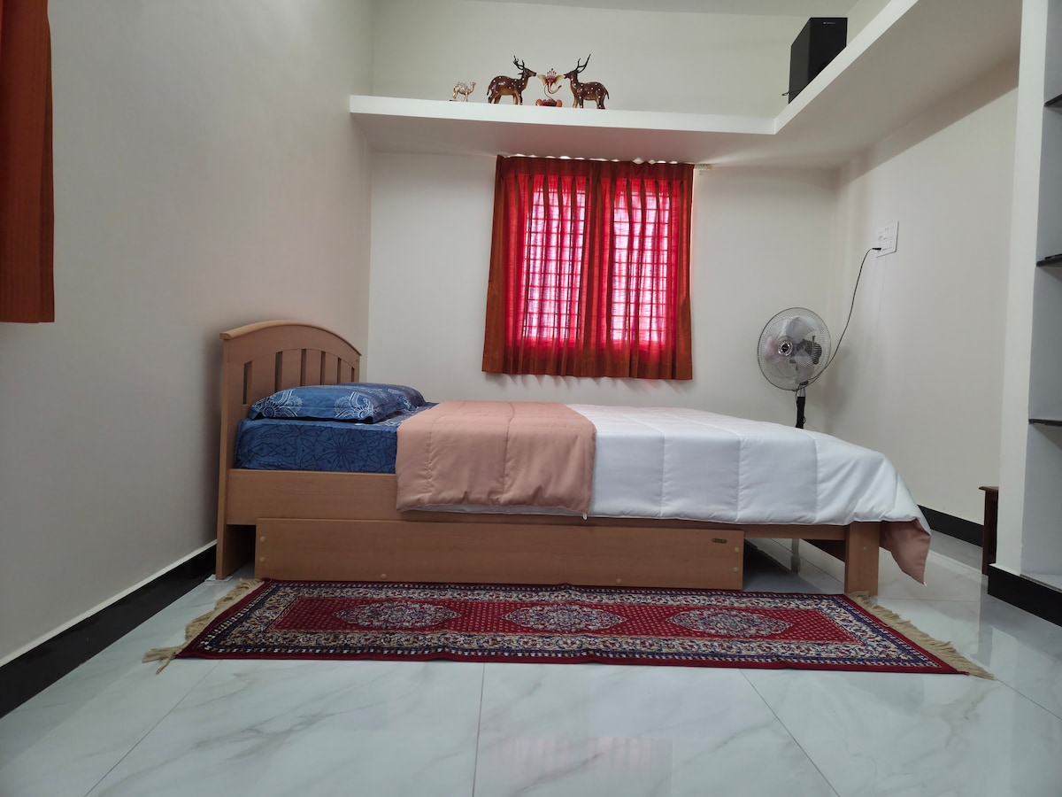 這是一個設備齊全的1BHK ,配有空調和一個巨大的大廳。火車站距離我們的房源僅1.7公里,主要巴士站距離我們的房源僅1公里。此房源位於豪華而寧靜的地區,適合短期和長期住宿。從這個房源右轉就能到達Alagappa大學、CECRI和其他教育機構。此房源適合前往Karaikudi/Chettinad地區進行遺產旅遊和朝聖的家庭入住。 入住這間寬敞又安靜的房源,忘卻所有心中的煩惱。