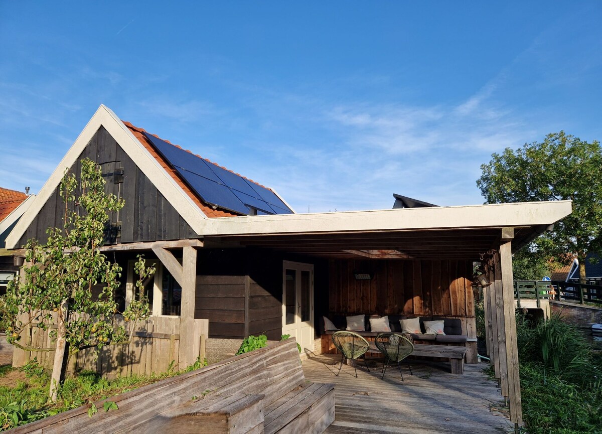 設備齊全的小屋,景觀美麗-舒適舒適! 房子配備了所有舒適設施。 從春天開始,您可以乘船或在立式槳板上探索風景優美的水道。*房源與Grote Vliet相連,這是一個熱門的水上運動和釣魚地點。 在IJsselmeer (海灘)的自行車距離內。 * SOLOP租金為每天75泰銖(由於冬季儲物空間,請詢問可能性)