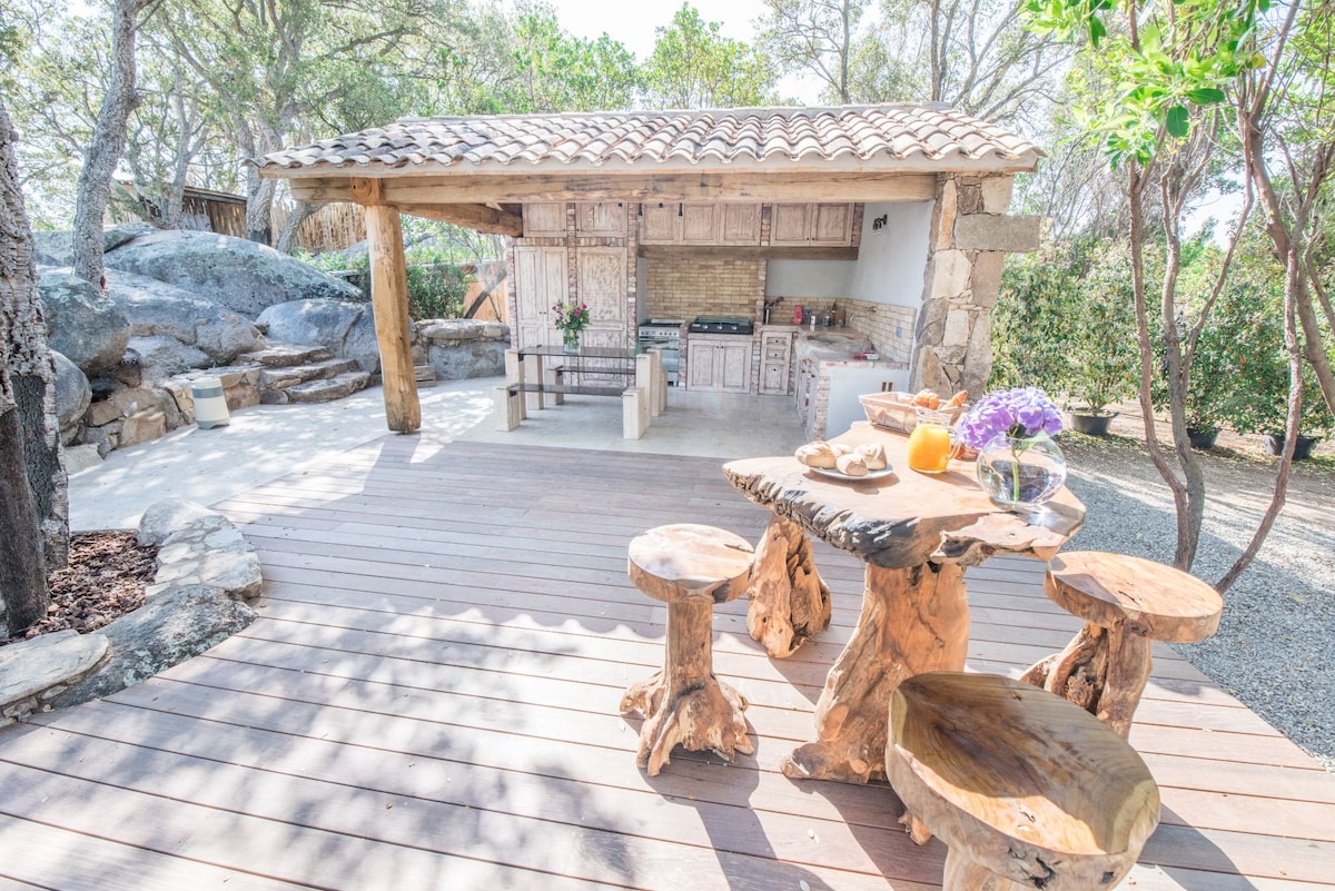 美麗的設備齊全的caseddu ,不容忽視的私人峇裏島石頭泳池、大露臺和泳池房,位於灌木叢中間。 夏季溫水泳池 適合情侶和嬰幼兒入住 如有需要,可提供所有嬰兒設備與服務。 雨傘牀、浴缸、高腳椅。 這是一個用我所有的能量和心靈製作的全新羊圈 我們迫不及待想與你分享並歡迎你。 期待相見 Steve和Eva
