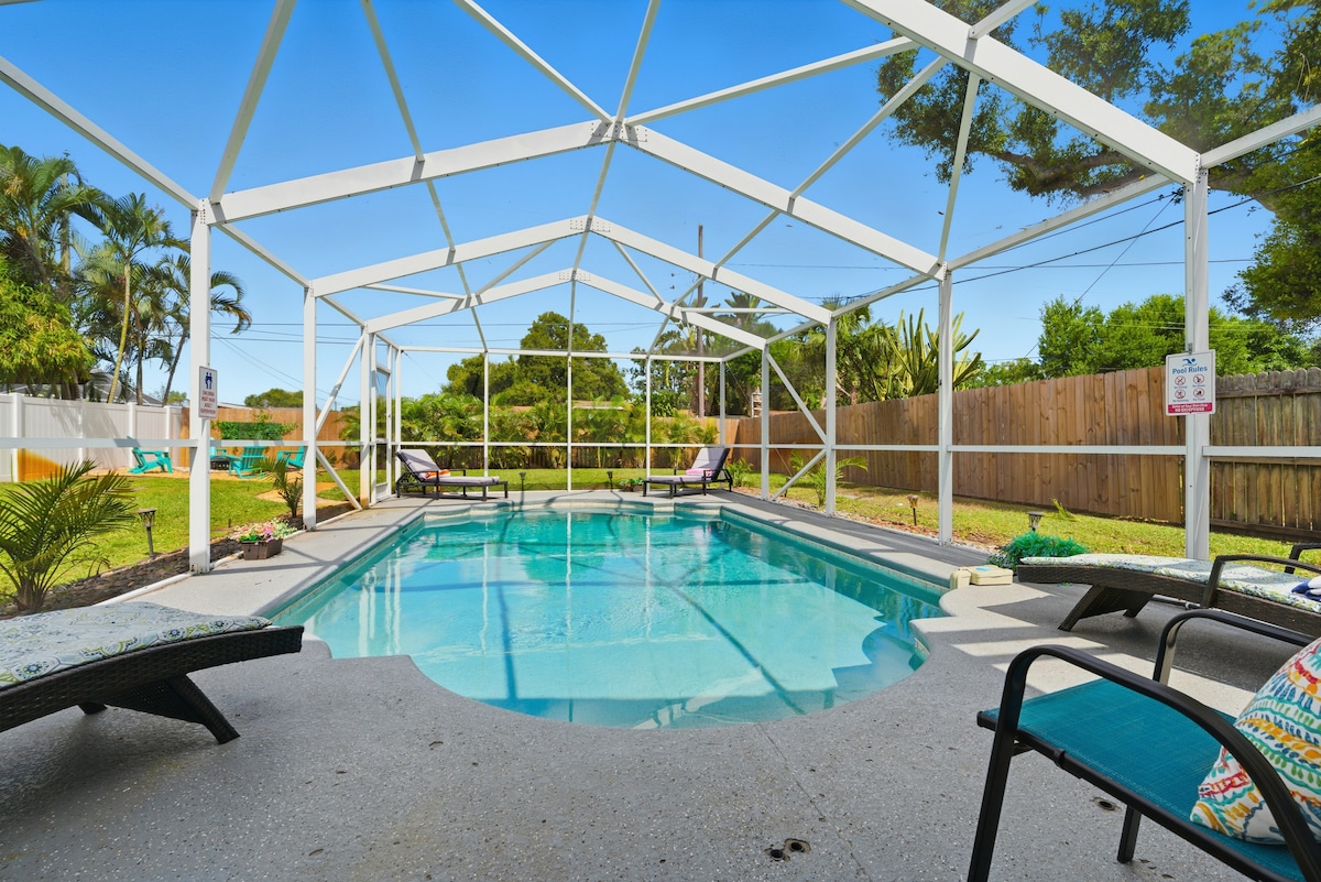 Sun Oasis! Heated Pool, Min to Beach, Fire Pit