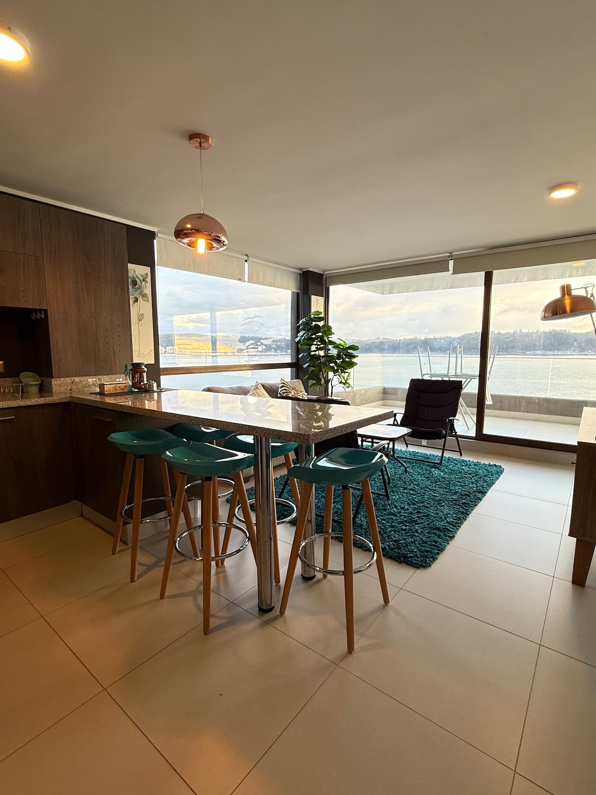 Moderno Dpto NUEVO full equipado, ideal para viajes familiares o de trabajo. Decoración acogedora que harán que tu estadía sea lo más confortable y segura posible, Ubicado en un barrio tranquilo y con un entorno rodeado de mucha naturaleza. Cuenta con conserjería 24 hrs, ascensor en el edificio, viene incluido estacionamiento gratis a pasos de la entrada principal. Con una ubicación privilegiada a pasos de Casino Marina del Sol, del Aeropuerto Carriel Sur, Mall trébol etc. A 2, 30 de las termas