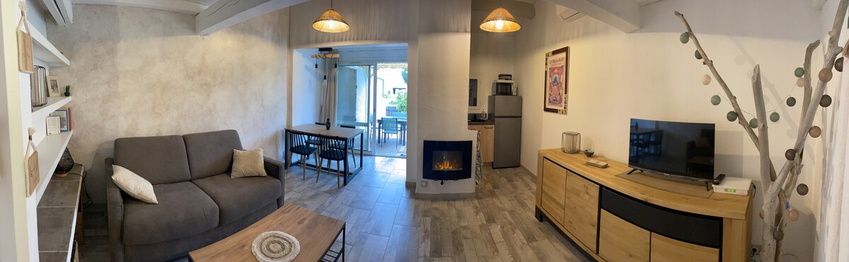 歡迎來到我們的私人綠洲,可供1至2人入住,位於La roquette中心地帶! 享受被熱帶植物包圍的熱水泳池。這個空間將為您提供陰涼安靜的天堂。 在戶外露臺廚房享用早餐、開胃酒或在泳池邊做飯。 臥室配有空調,並配有豪華酒店品質的牀上用品和有機牀單,以確保您的住宿愉快而難忘。