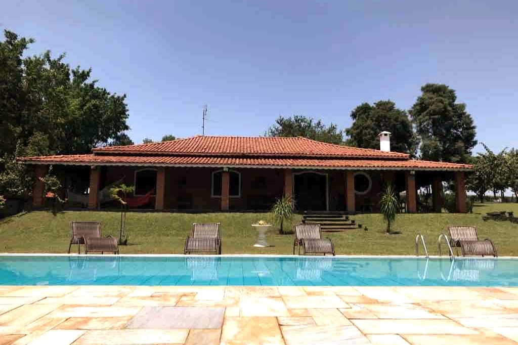Casa com piscina cercada de natureza, a poucos minutos do Thermas de São Pedro, ideal para quem quer descansar com conforto e privacidade. Apenas 5 min de Águas de São Pedro e 10 min do Thermas Water Park. Ideal para relaxar com família, amigos e pets