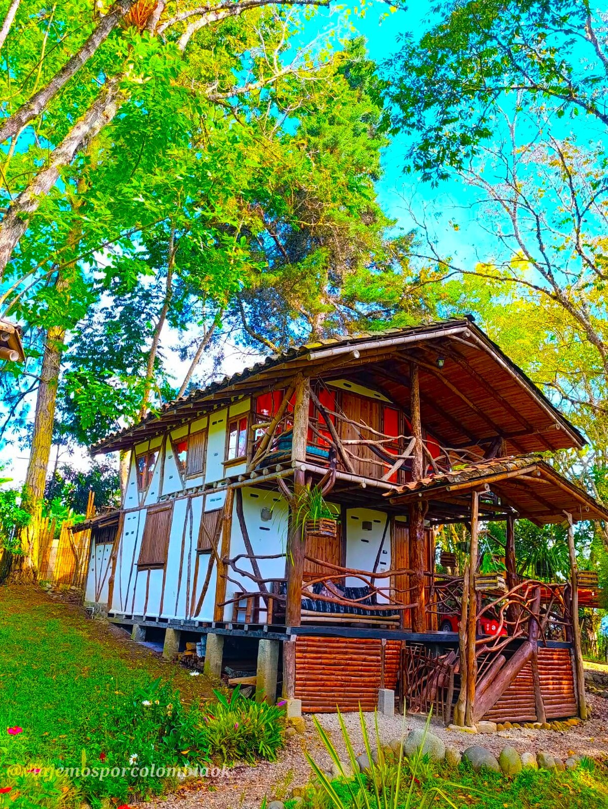 這是一座以泥土和竹子建造的美麗生態小屋,非常適合獨自一人或情侶入住。 坐落在森林和牧場旁邊,可欣賞美麗的景觀。 距離聖奧古斯丁市中心僅1.5公里。 設有廚房、堆肥廁所和營火區。