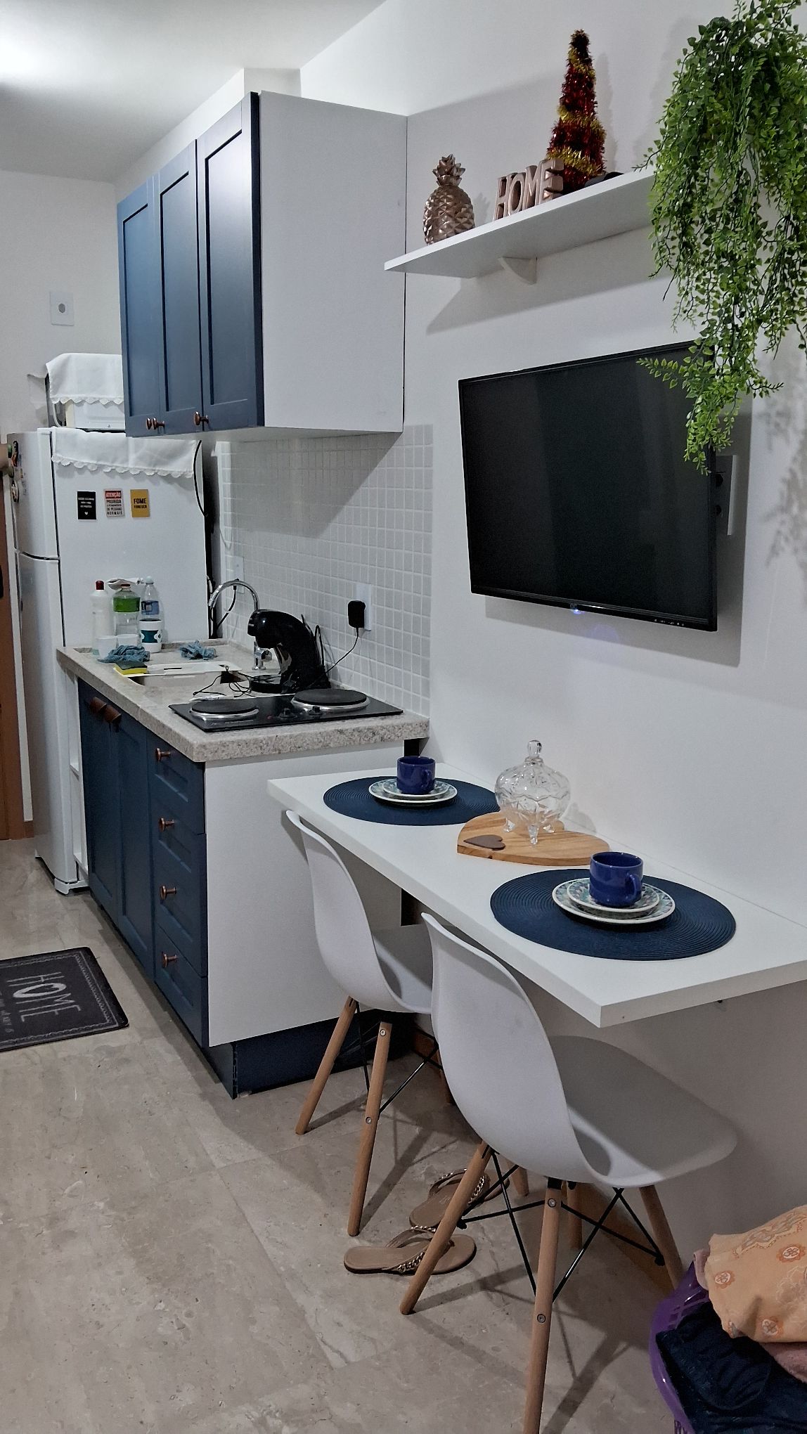 Studio Smart Orla tem uma decoração aconchegante e um ambiente acolhedor, ótimo para relaxar após dias de passeios ou trabalho. O apto dispõe de cozinha completa, para que vc mesmo possa preparar as suas refeições. Tv smart com Netflix, Uma cama confortável, mesa para refeições que pode ser usada também para trabalho. Além do banheiro que é muito charmoso e contém tudo que o hóspede precisa (shampoo, sabonete, condicionador, creme dental…) o Wi-Fi é ótimo e o ar condicionado gela muitooo.