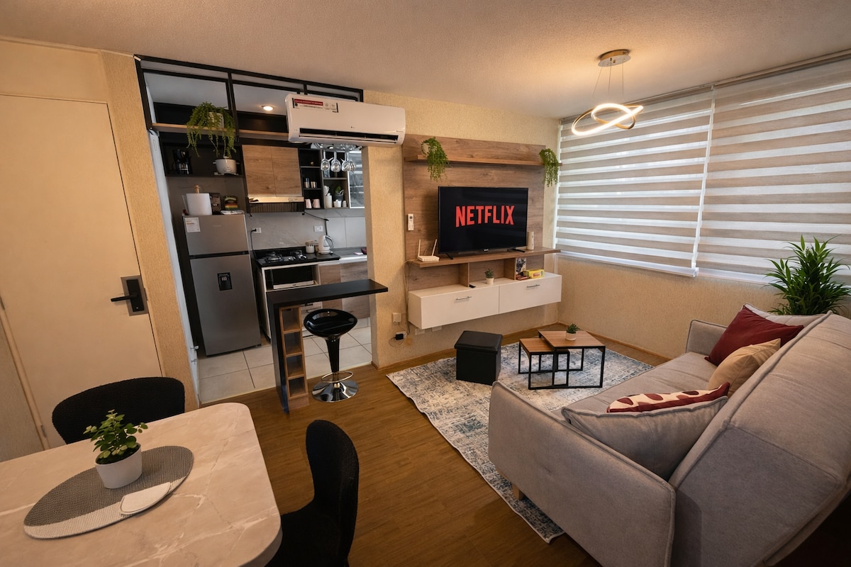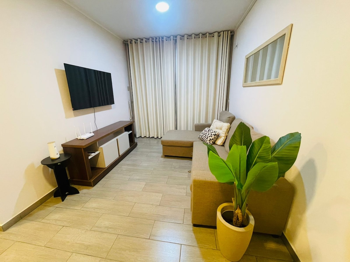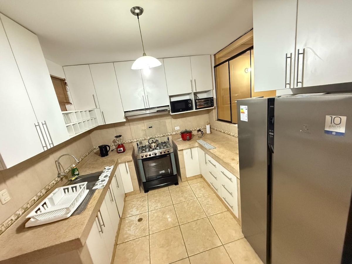 歡迎來到您在Piura的家! 在我們的公寓享受舒適的住宿,距離Real Plaza購物中心3個街區,靠近最好的餐廳。 它有: - 02間臥室:每間均配有雙人牀和大衣櫃。 -Escritorio -舒適的客廳,配備55吋電視。 -美式廚房: -瓦斯爐 -冰箱 -水壺、咖啡機、攪拌機和電鍋 -可供4人使用的廚房用具。 - 02個風扇