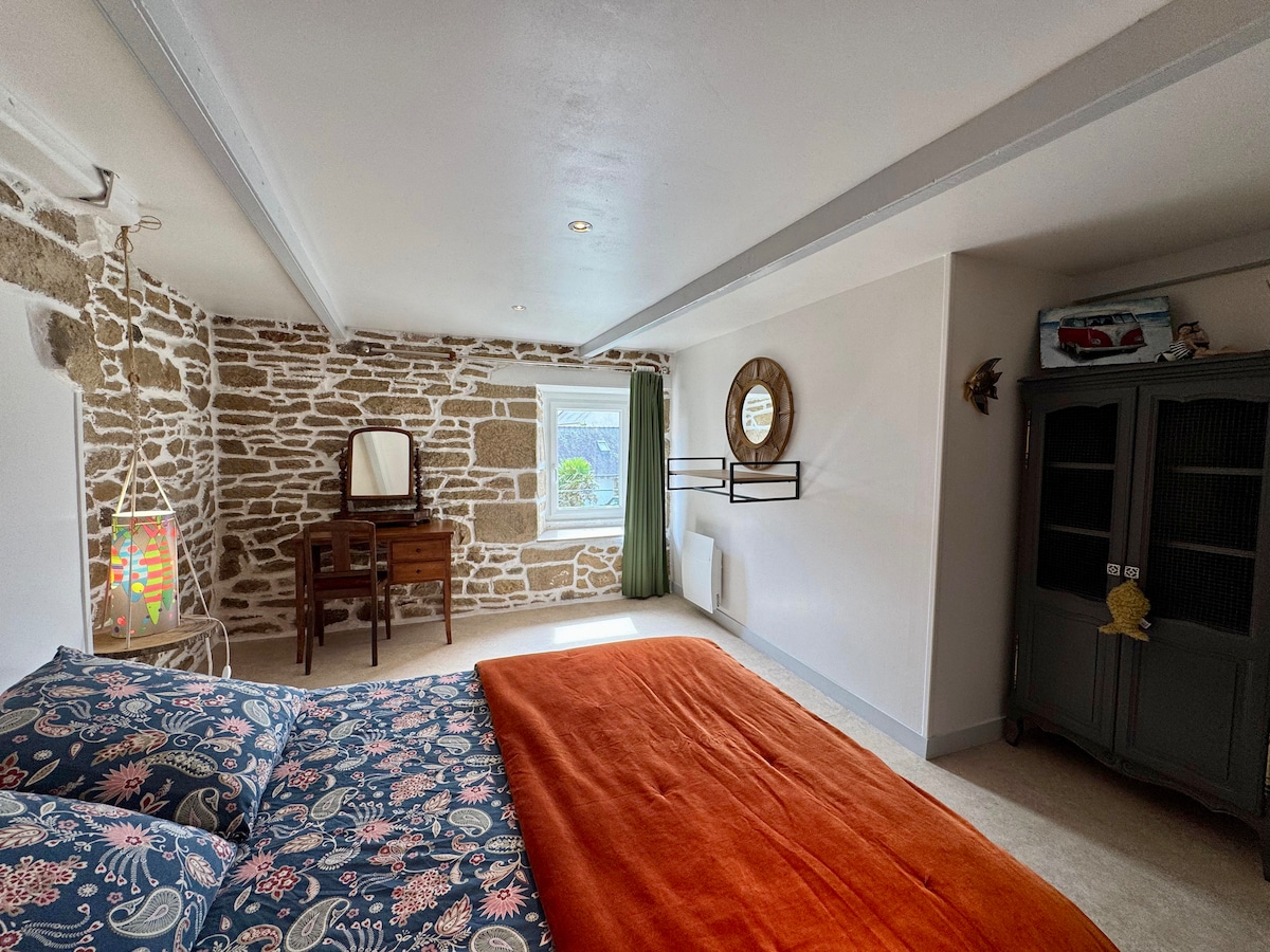 Notre jolie longère bretonne (classée 3 étoiles par OT 29) a été entièrement rénovée en 2020 par nos soins et nous avons souhaité en faire un lieu chaleureux et accueillant tout en gardant le charme de l'ancien en utilisant des matériaux comme la pierre, le bois, le chanvre et la chaux. Située à 500 mètres de la baie du KERNIC, la maison est idéalement située pour les adeptes du vélo, de la randonnée et des activités nautiques.