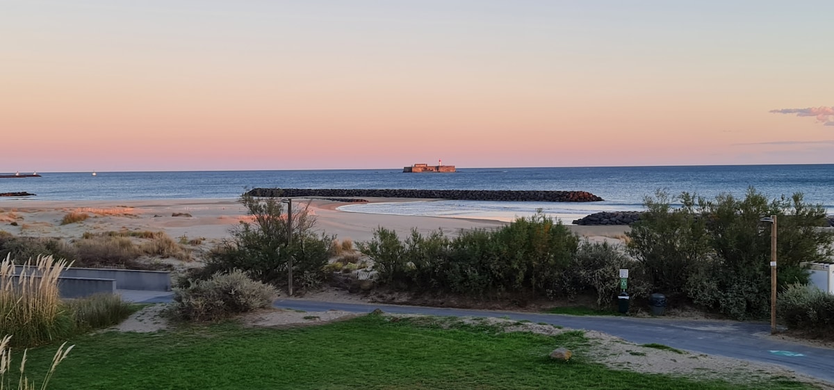 「Le St Barth」公寓,對面是Rochelonge海灘,位於Cap d 'Agde以西,位於Grau d' Agde邊緣。 三個沙灘海灣超過約800米。 距離+ + ✔ Rochelonge海灘40公尺 ✔ 海景 ✔停車場 ✔ 電梯 ✔泳池 ✔ 二合一洗衣機烘衣機 ✔ 洗碗機安全 牀✔單、毛巾,無需支付額外費用。 ✔ 入門套裝(食塩、胡椒粉、油、醋、糖... ) 在Rochelongue (西側)的點,我們有最後一個野生海灣。