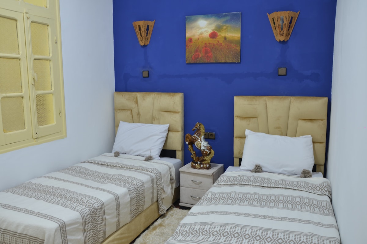 Dar Amusafir位於安靜、安全的區域,位於麥地那市中心;靠近商店、咖啡館、酒吧,步行即可抵達海灘。 對於行動不便的人來說,沒有樓梯。 服務項目: -免費光纖 WiFi -電視;國際頻道和 Netflix -電熱原木暖氣 - 160 x 200 公分床 -臥室內的起居區 -臥室門鎖 -獨立浴缸和淋浴間,配有座椅 - USB 連接埠、床的兩側各有一個電源插座 -自助早餐食材 -城市之旅、計程車