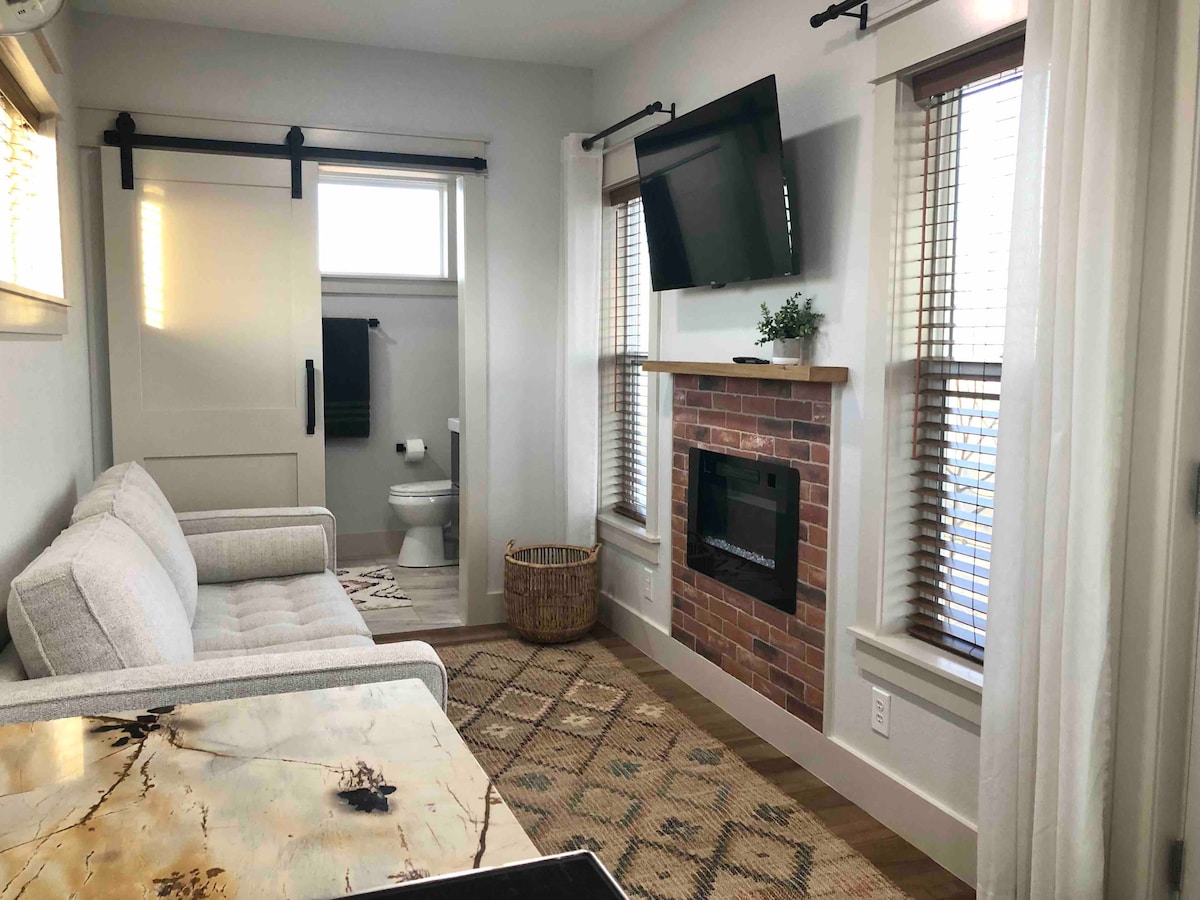 結合新舊...入住這個鄉村寶石時,感覺清新。 SC可以舒適入住4人。 小廚房配有咖啡機、烤面包機、電水壺、微波爐和冰箱。 浴室內有額外的設備與服務,以防你忘記一些東西。 淋浴間有外露的銅管,一定會令人印象深刻。 外面有一個有阿迪朗達克椅子和燃氣火坑的小露臺,可俯瞰牛牧場和令人驚嘆的Panhandle日落。