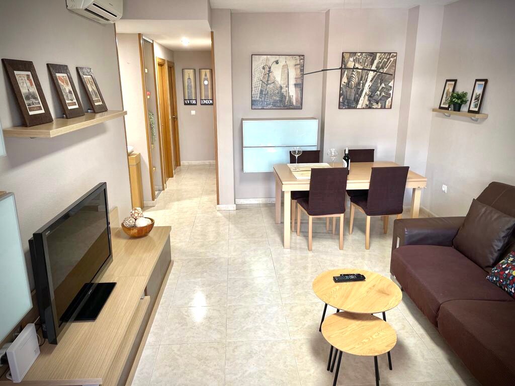 Relájate y desconecta en este alojamiento tranquilo y elegante.con piscina gimnasio sauna zona infantil sala de ping_pong sala para teletrabájo con WiFi gratuito parking subterráneo gratuito vigilancia 24h conserje y seguridad cerca de las playas y las calas y cerca del parque de atracciones terra mítica y del parque acuático aqualandia y terra natura y del centro comercial la marina tiendas bares restaurantes y farmacias y transportes públicos y con transfer al aeropuerto de Alicante