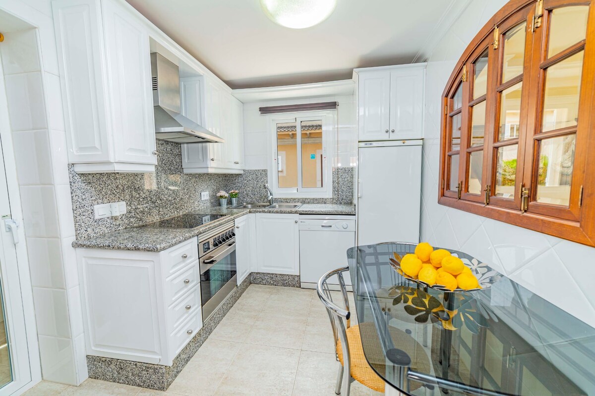 此半獨立式別墅位於一個美麗的私人住宅區內,該區僅有 10 戶住宅,配有面向湖泊的私人花園和社區泳池。 距離阿爾庫迪亞海灘僅200公尺,結合湖景和步行幾分鐘即可抵達海邊的便利性。