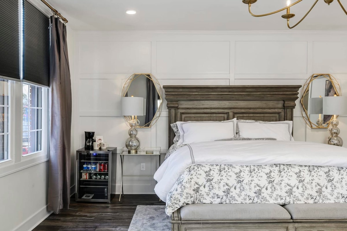 我們的住所坐落在迷人的Main Street Parkville中心,獲得了「美國最酷的小鎮」稱號,無疑是您夢寐以求的理想度假勝地。 在室內,您可以找到一張舒適優雅的QUEEN尺寸的牀,無論您是獨自探險還是與親朋好友一起探索一天後放鬆身心。