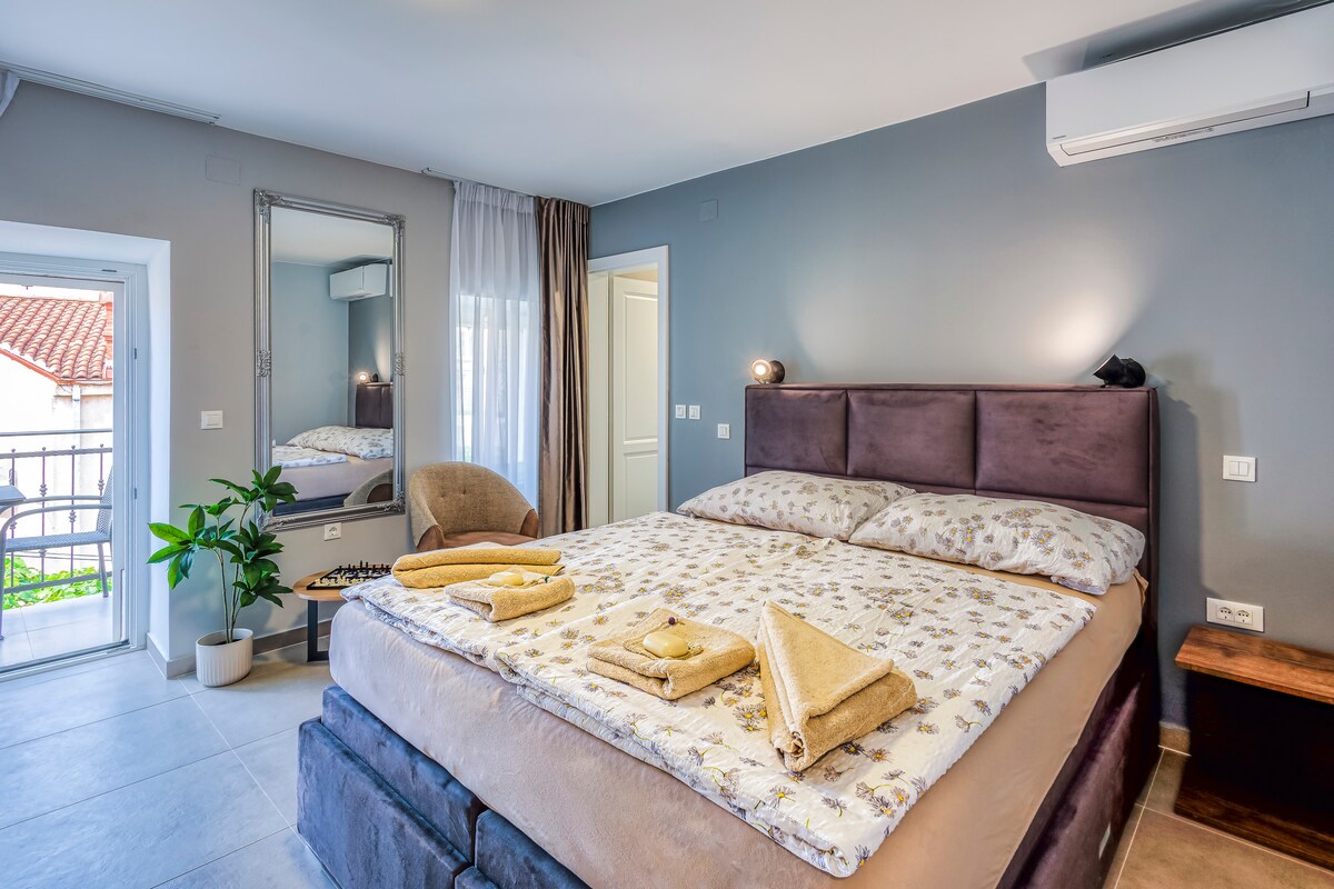公寓距離克爾克鎮(克爾克島)中心100公尺,距離海邊150公尺,距離海灘500公尺。 住宿配備:電視、暖氣、空調、網路、嬰兒床(事先安排)。價格包含所有費用。 寵物友善住宿-僅限事先安排(額外費用)。