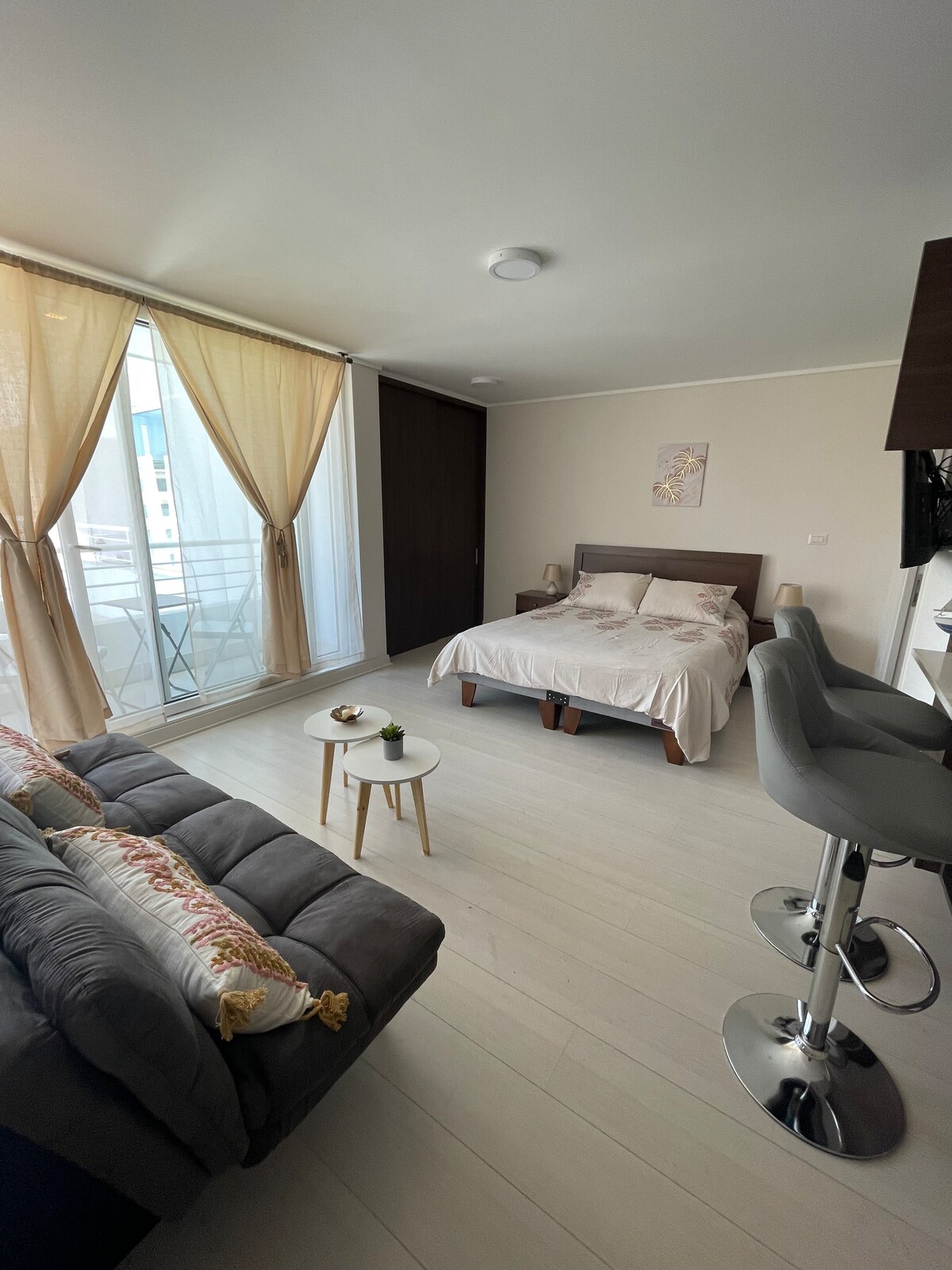 1 間臥室公寓,50 平方公尺,最多可容納 3 至 4 名成人(1 張雙人床 + 1.5 張沙發床),家具齊全,包括有頂棚的停車位。 距離聖馬丁 (San Martin) 1 街區,位於非常安靜的區域,距離多個娛樂場所僅幾步之遙:海灘、Muelle Vergara、Casino Enjoy、餐廳、酒吧、超市和商場。