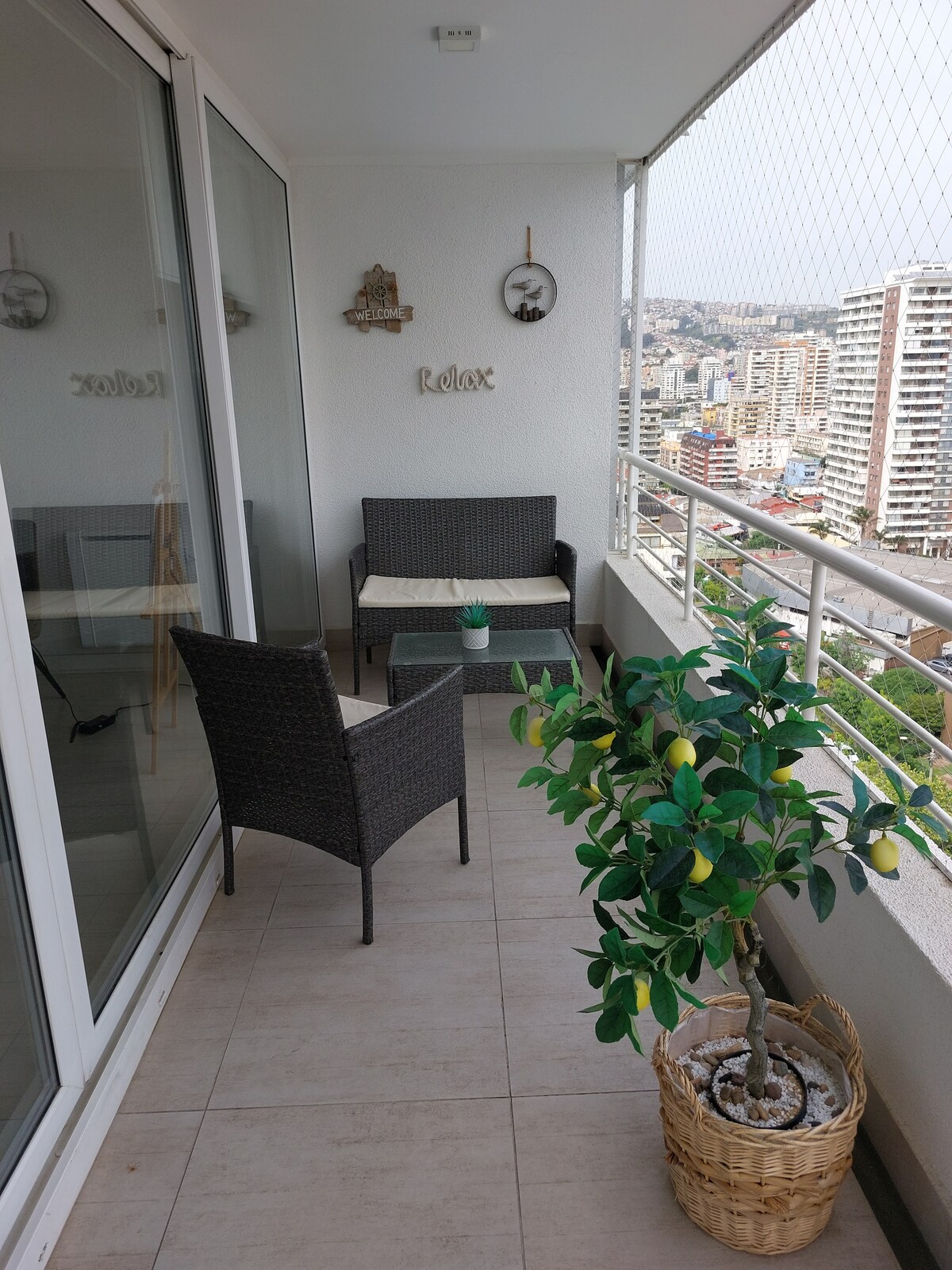 完美的公寓,享有海景。地理位置優越,設有私人停車場,並配備了在比尼亞德爾馬度過美好假期所需的一切。聖馬丁大道 (Avenida San Martin),海濱第一線。可使用獨家花園,這是一個綠色空間,您可以在此放鬆身心,享受寧靜。 靠近超市/餐廳/酒吧/享受大道賭場。距離Mall Marina Arauco購物中心4個街區,距離Libertad大道2個街區,位於Vergara碼頭對面。