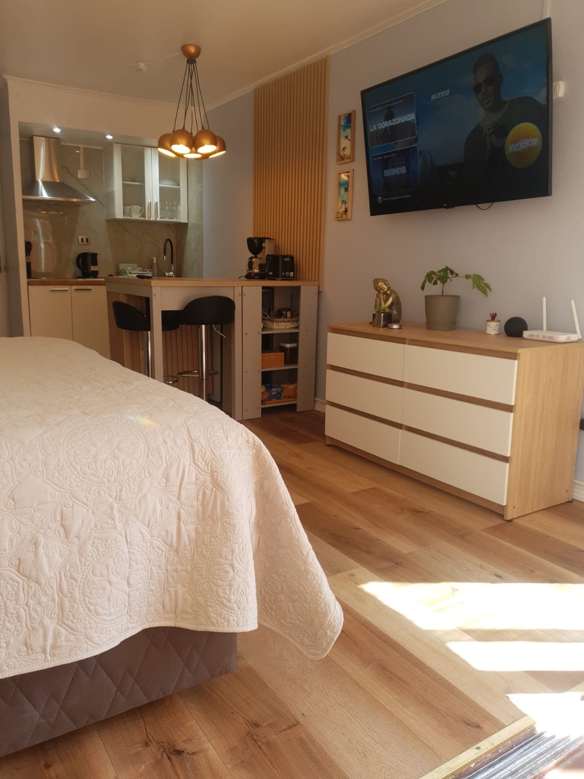 全新公寓,設備齊全,距離海灘、商場和遊戲賭場僅幾步之遙。 可以欣賞海景的豪華公共區域。 *標準雙人床,含床單 *沙發床,有床單 *公寓內的洗衣機 * 小廚房 *露臺 * 50 吋網路電視 * WiFi *暖氣 建築物有: *帶陽台的溫水泳池,可日光浴 *寬敞的健身房 *私人停車區域