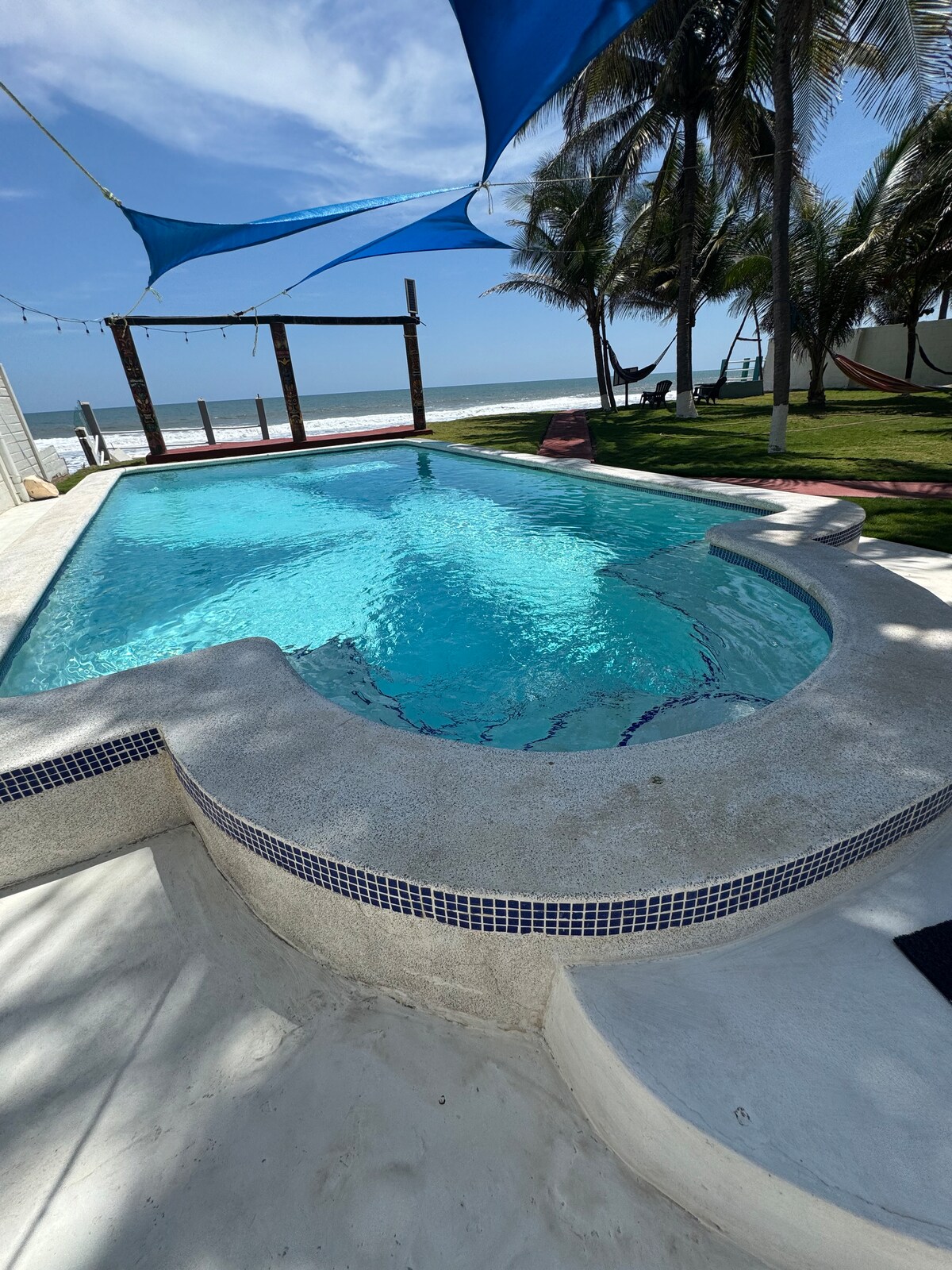面向大海的美麗海灘房屋。 包括客棧。 它有4間臥室。3間半浴室、泳池和吊牀區域。距離薩爾瓦多機場20分鐘,距離衝浪城30分鐘 這座美麗的房子位於Amatecampo私人海灘,提供豐富的沙灘、海上和奢華生活。 這間令人難以置信的海濱房屋配備了一切,讓您擁有難忘的住宿體驗,門口也有令人眼花繚亂的沙灘。 拿起你的防曬霜,讓我們來看看……