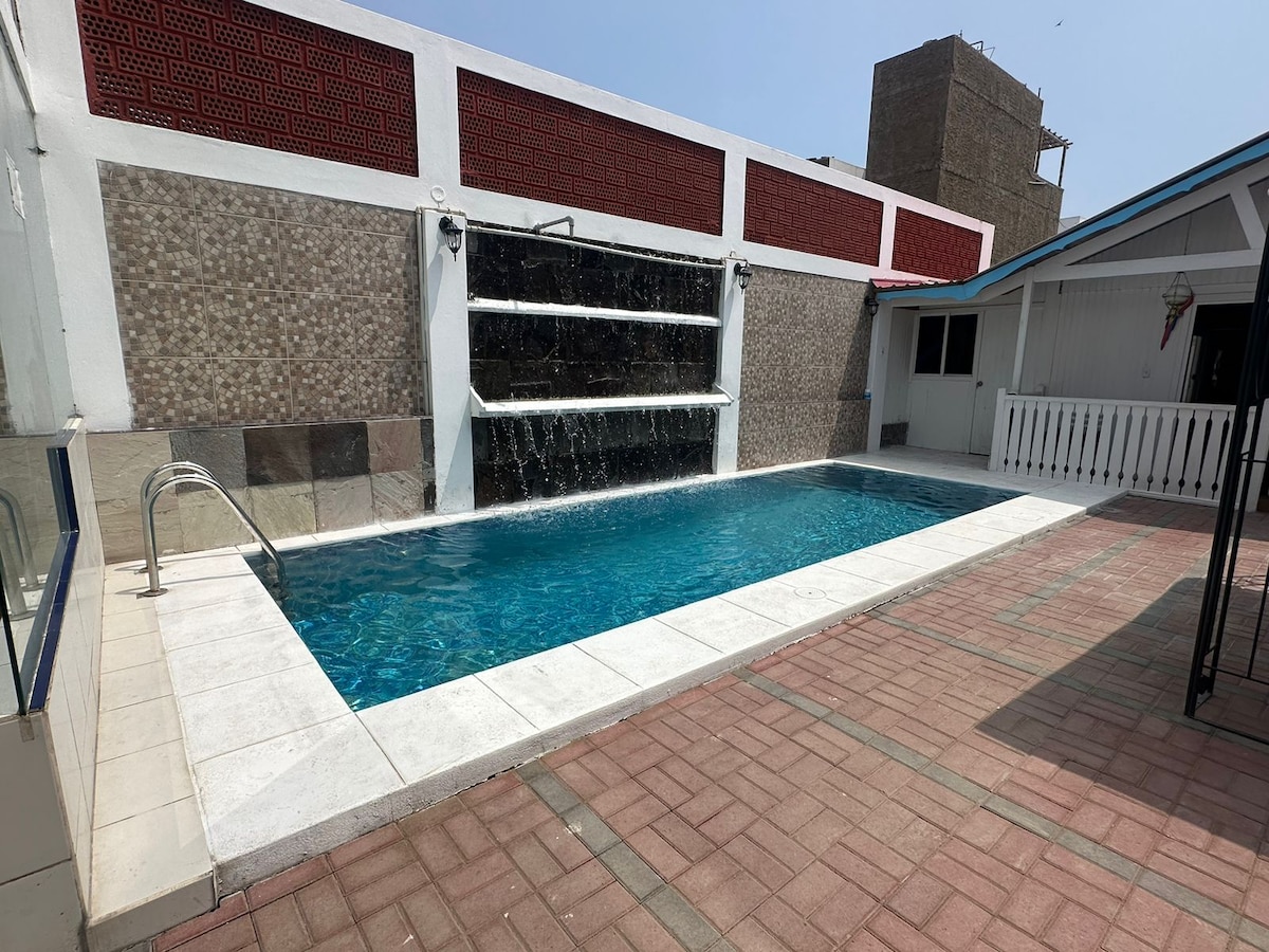 您會感受到專屬的遊輪之旅! 所有區域均供房客獨家使用(不與他人共用) 3間客房、廚房、飯廳、離開、露臺、WiFi、有線電視、花園、泳池、2輛車的停車位 距離海灘40公尺 卡瓦列羅斯( Caballeros )、Señoritas (直達景觀)或在海景中放鬆身心的最佳去處 歡迎來家庭和好友團體入住。 這棟房子有足夠的空間讓您玩得開心,聆聽音樂,並享受利馬最好的景觀之一,享有完全的隱私