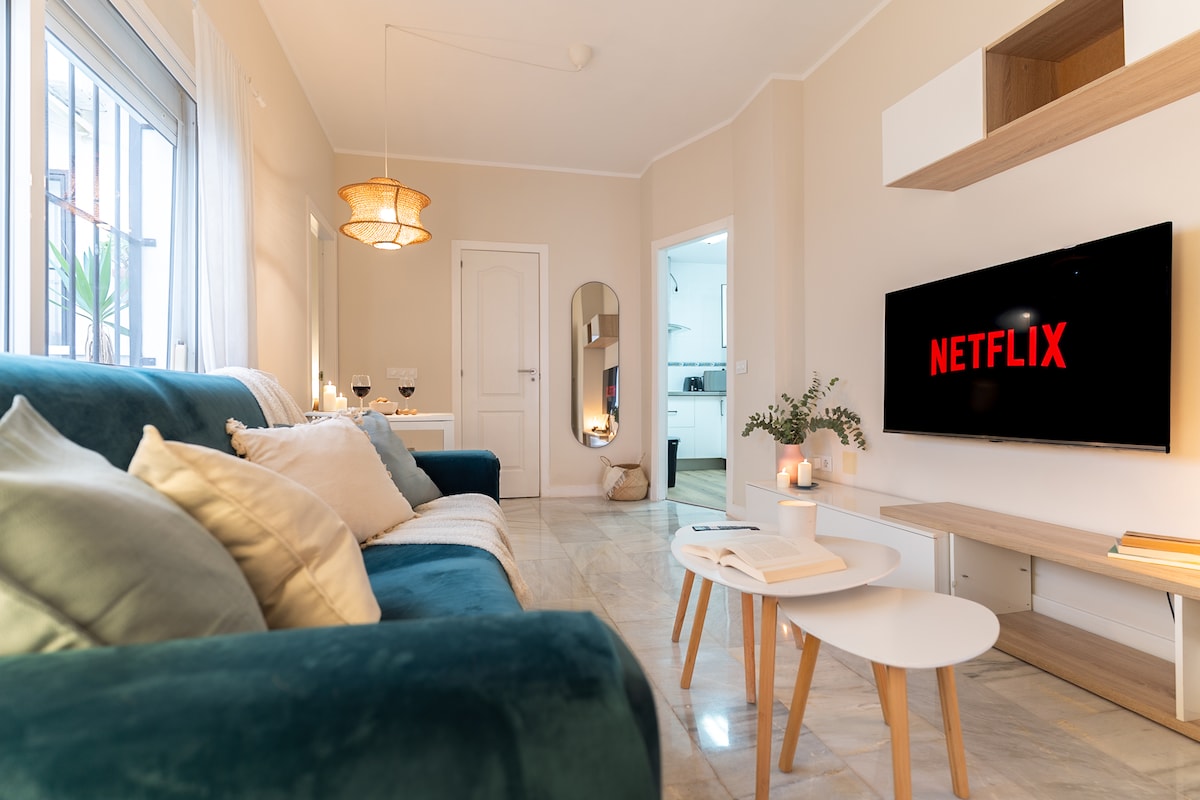 我們邀請您在馬拉加市中心的舒適單間公寓中放鬆身心。享受雙人床、舒適的沙發床、全功能廚房、43 吋智慧型電視、免費 WiFi 和寬敞的更衣室,以整理您的物品。位於距離歷史中心僅 550 公尺的安靜區域,讓您在享受馬拉加魅力的同時,也能放鬆身心。來沉浸在這種體驗中吧!