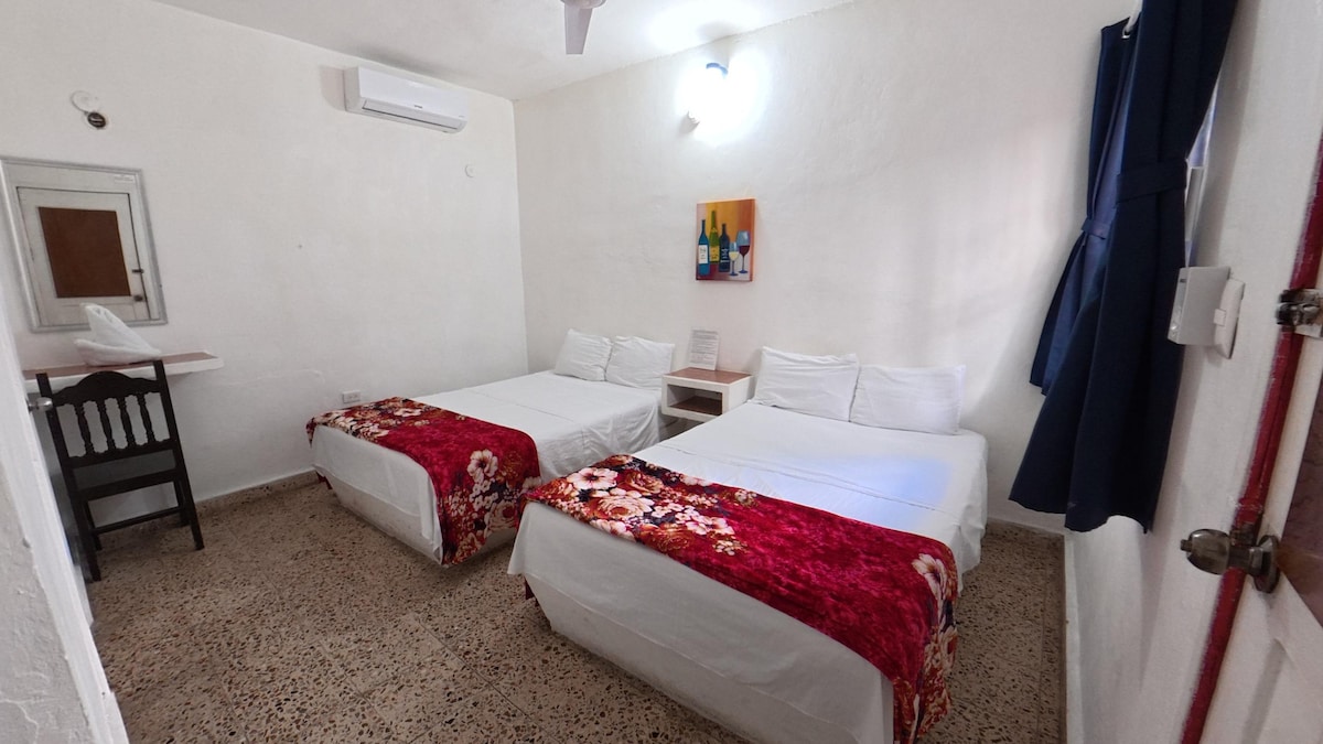 Hab. privada 2 camas matrimoniales sin TV con A/C